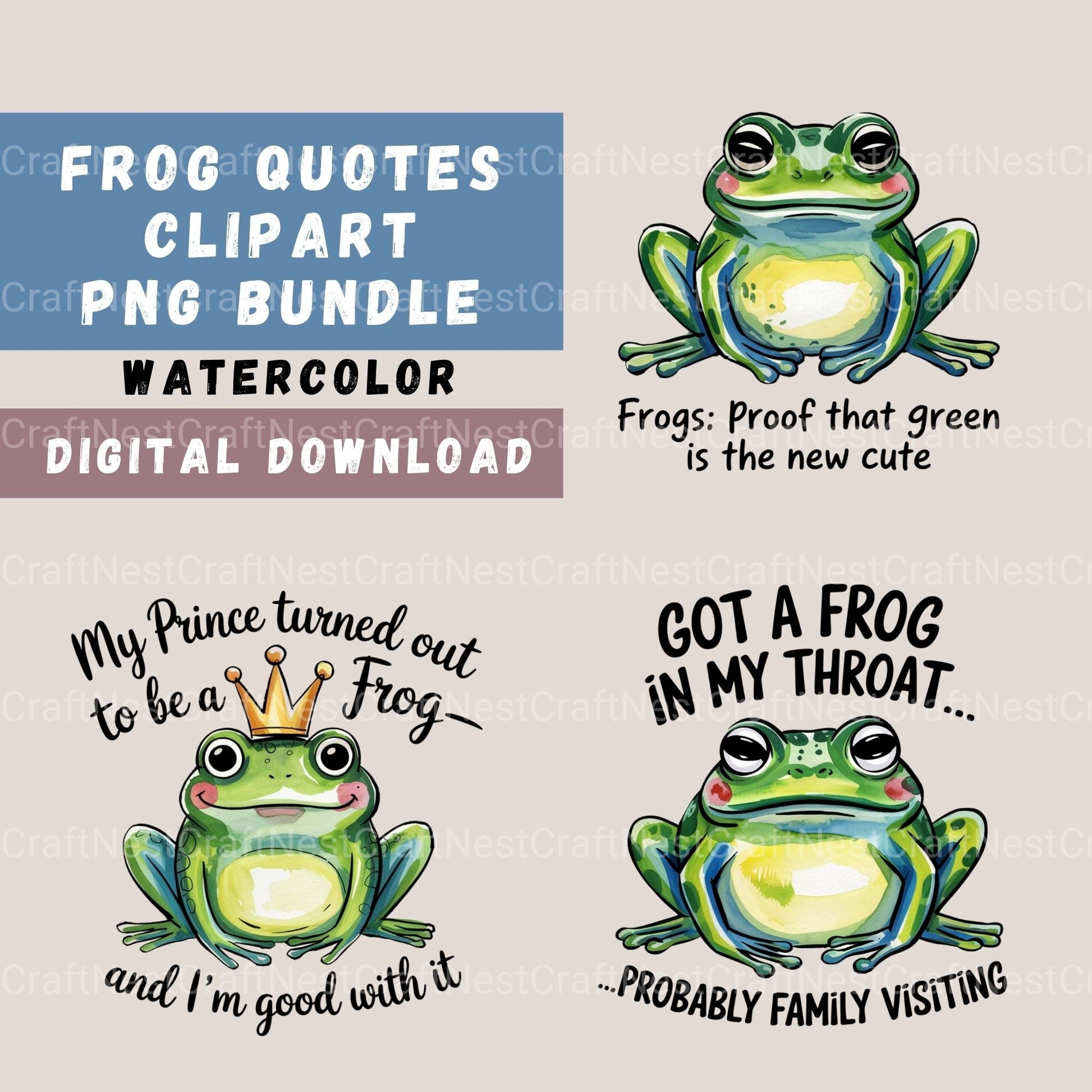 Funny Frog Quotes Clipart Bundle