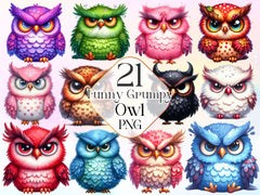 Funny Grumpy Owl Clipart Bundle