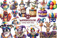 Party with this Funny Mardi Gras Clipart Bundle, featuring humorous carnival designs, ideal for festive celebration crafts.