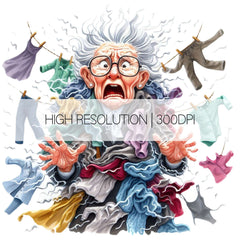 Wash with giggles using this Funny Old Ladies Laundry Day Clipart set, featuring laundry-themed designs, ideal for quirky projects.