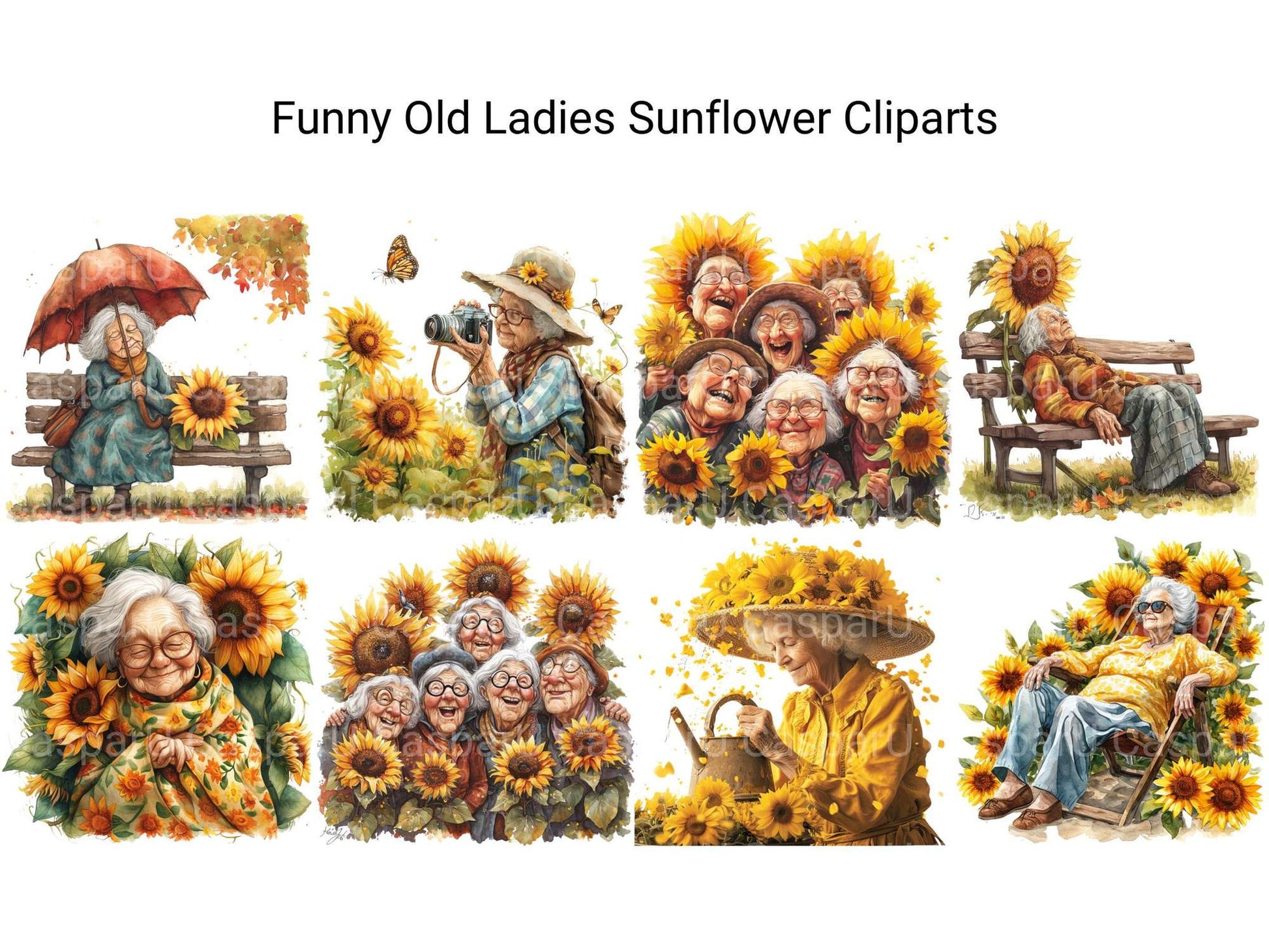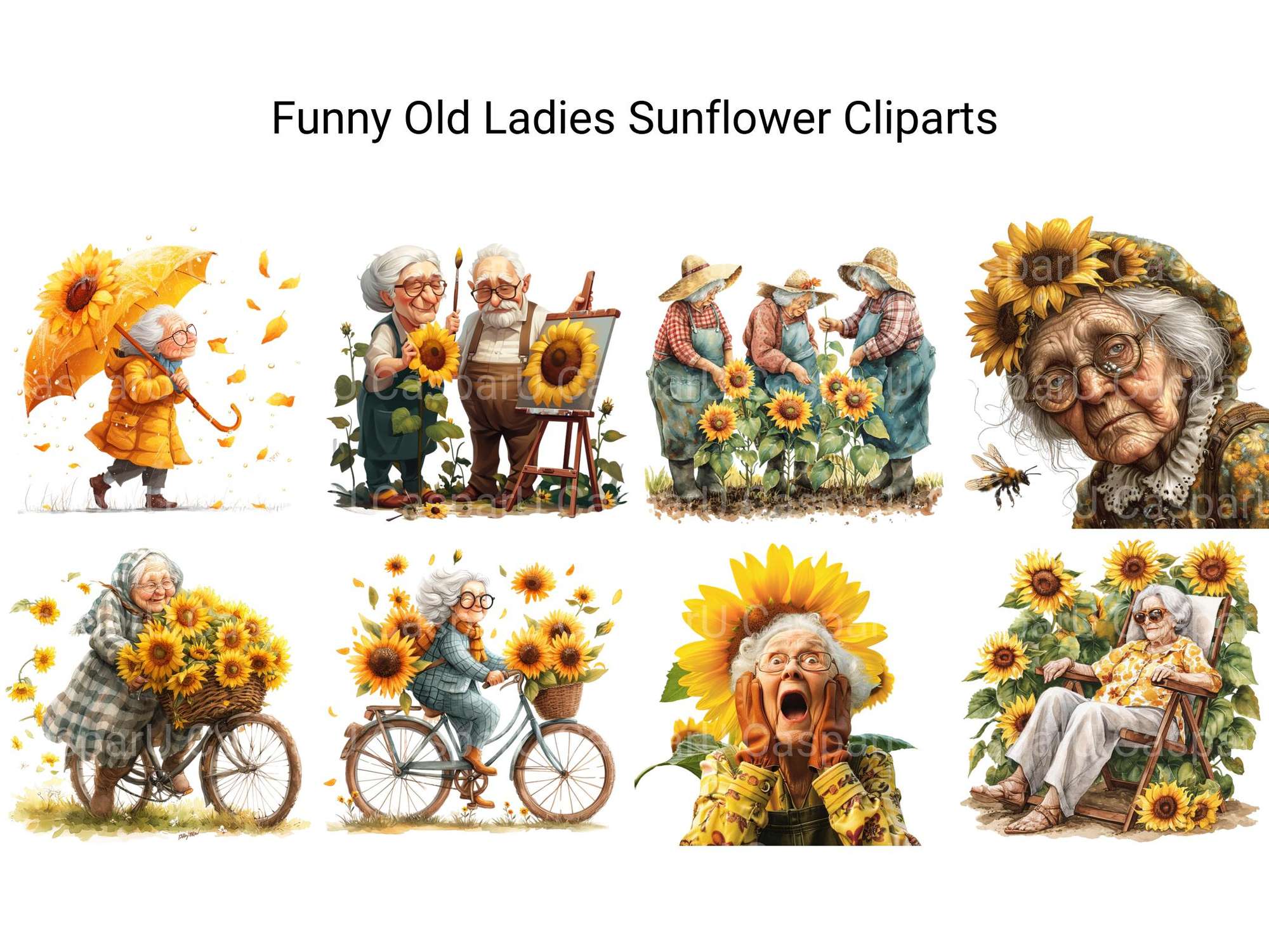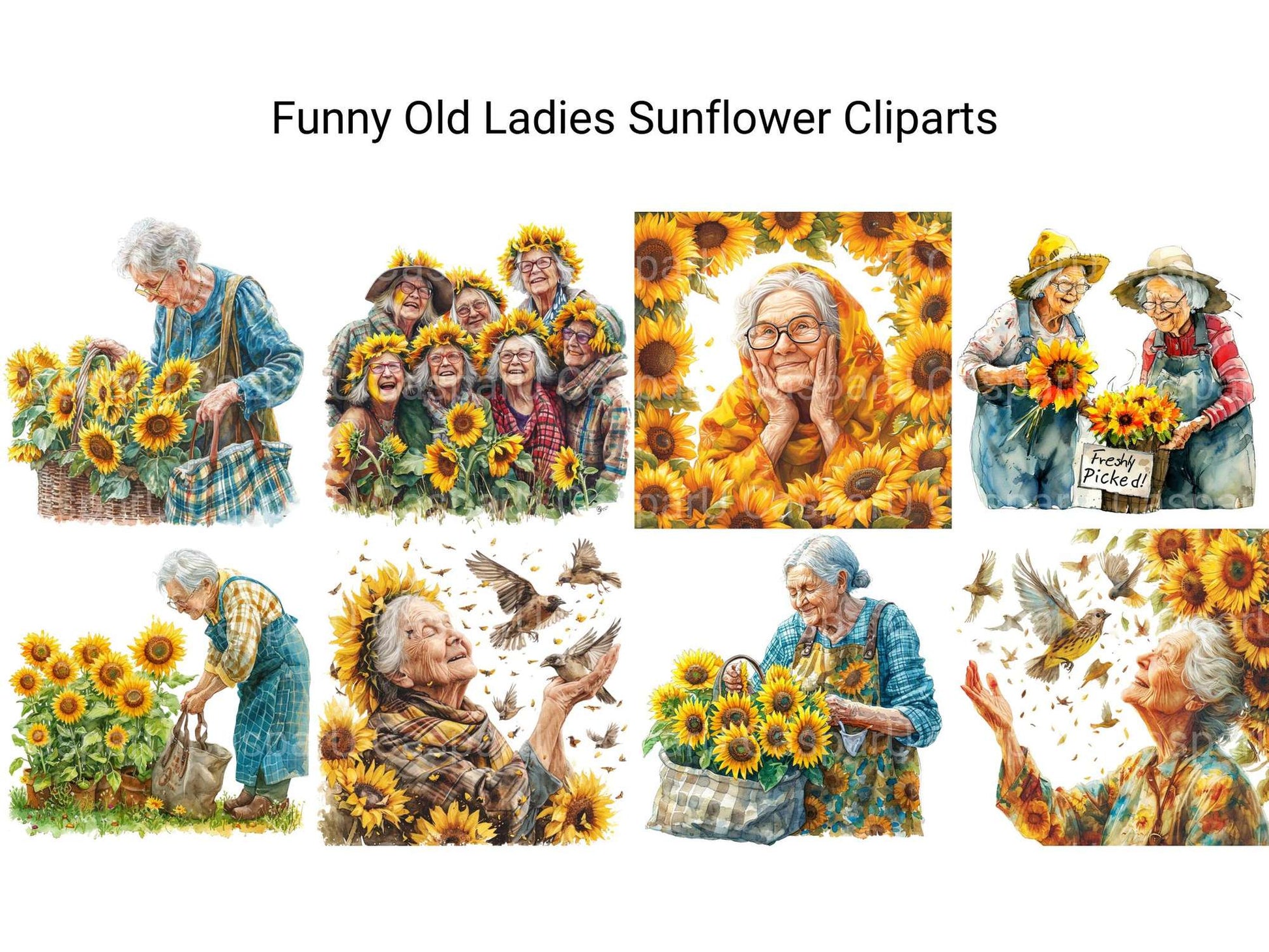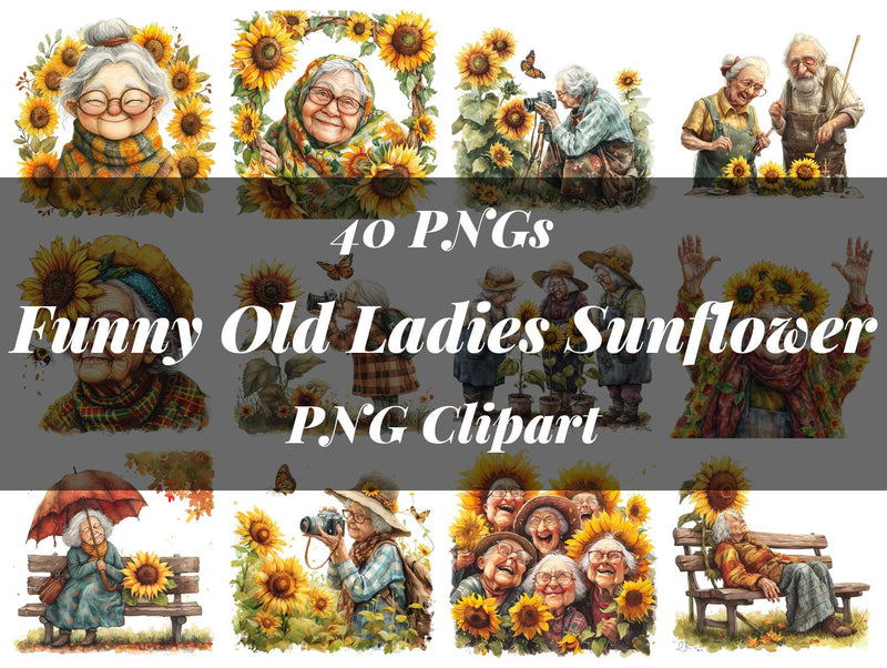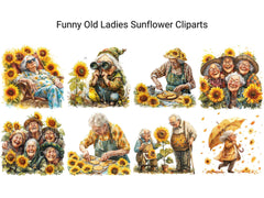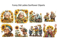 Bloom with laughs using this Funny Old Ladies Sunflower Clipart set, featuring sunny elderly designs, perfect for cheerful projects.
