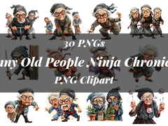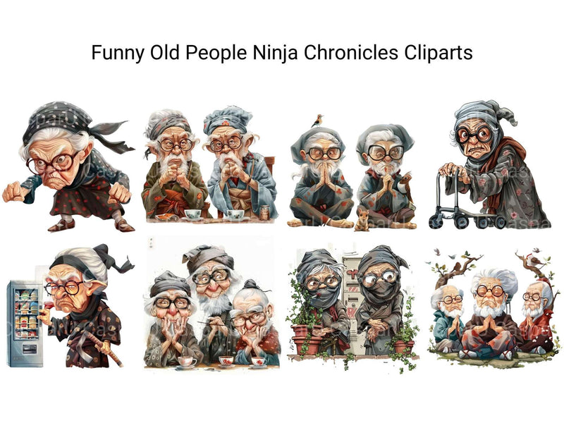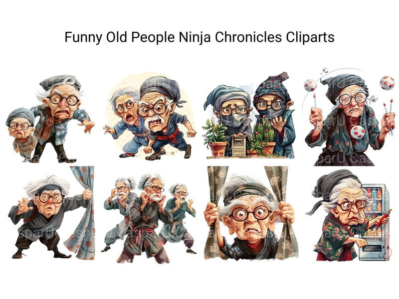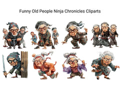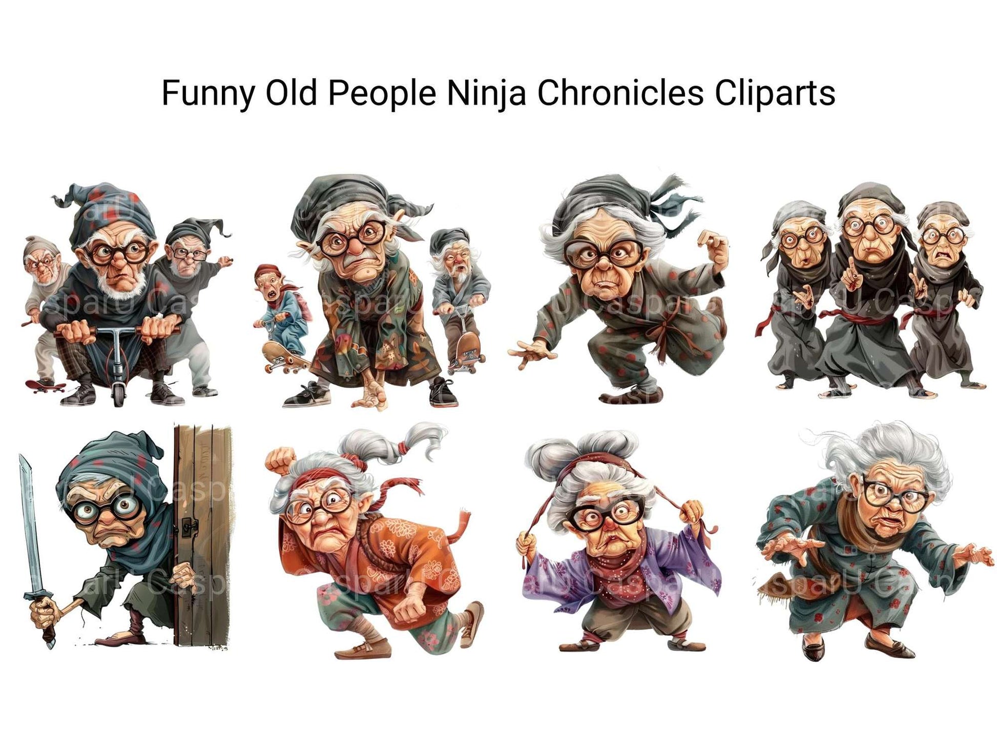 Fight with flair using this Funny Old People Ninja Chronicles Clipart set, featuring ninja elderly designs, ideal for playful projects.