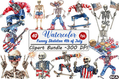 Celebrate Independence Day with our Funny Skeleton 4th of July Clipart Bundle! Perfect for adding a humorous twist to your holiday projects, this collection features quirky skeleton designs decked out in patriotic flair. Ideal for digital scrapbooking, party invitations, and DIY crafts, these high-quality images will bring a unique charm to your 4th of July festivities. Unleash your creativity and make your celebrations unforgettable with this one-of-a-kind clipart set!