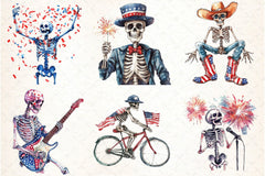 Funny Skeleton 4th of July Clipart Bundle