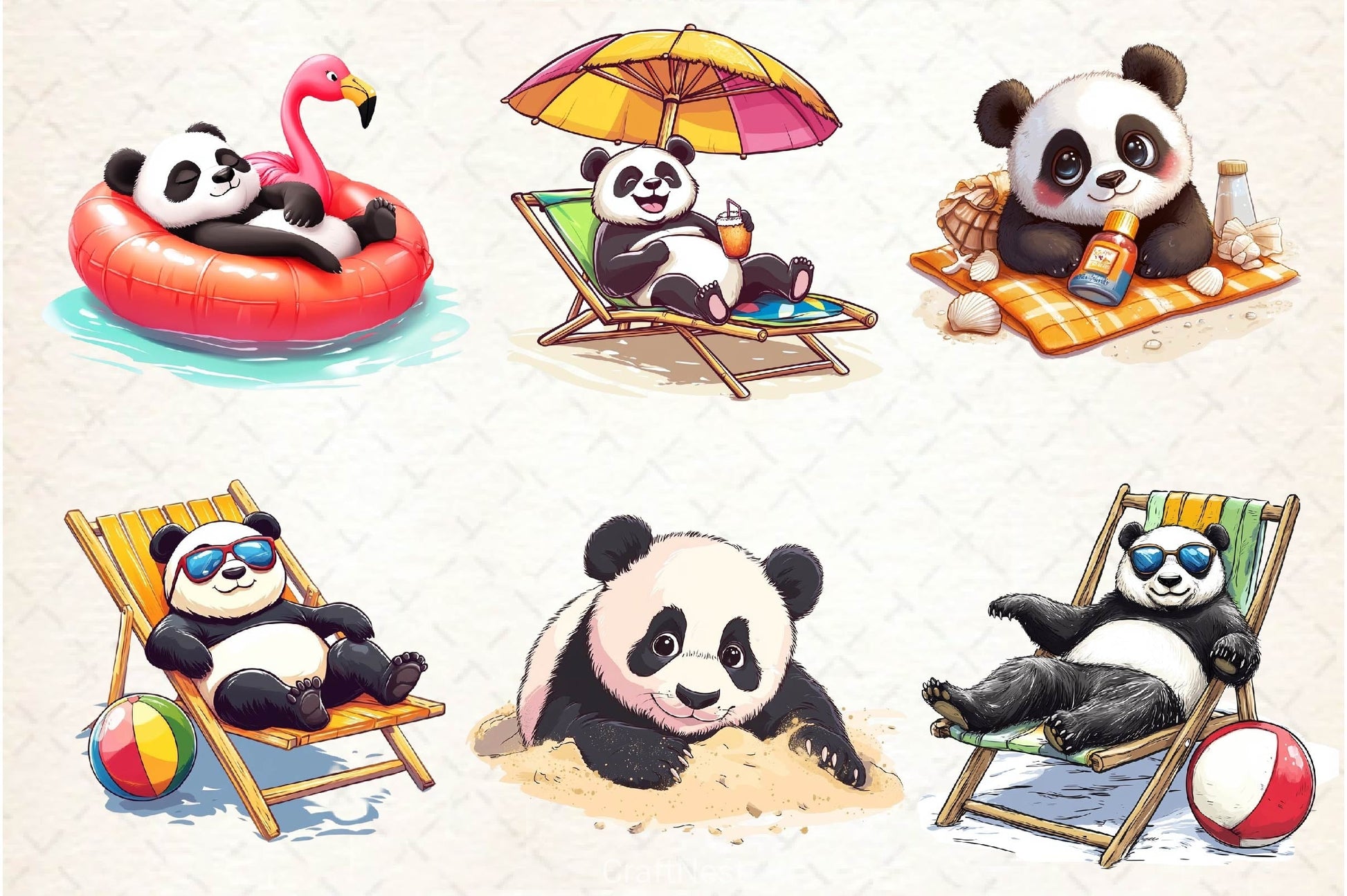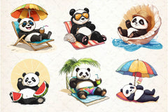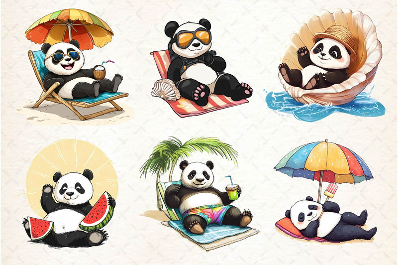 Funny Sunbathing Panda Clipart Bundle 2
