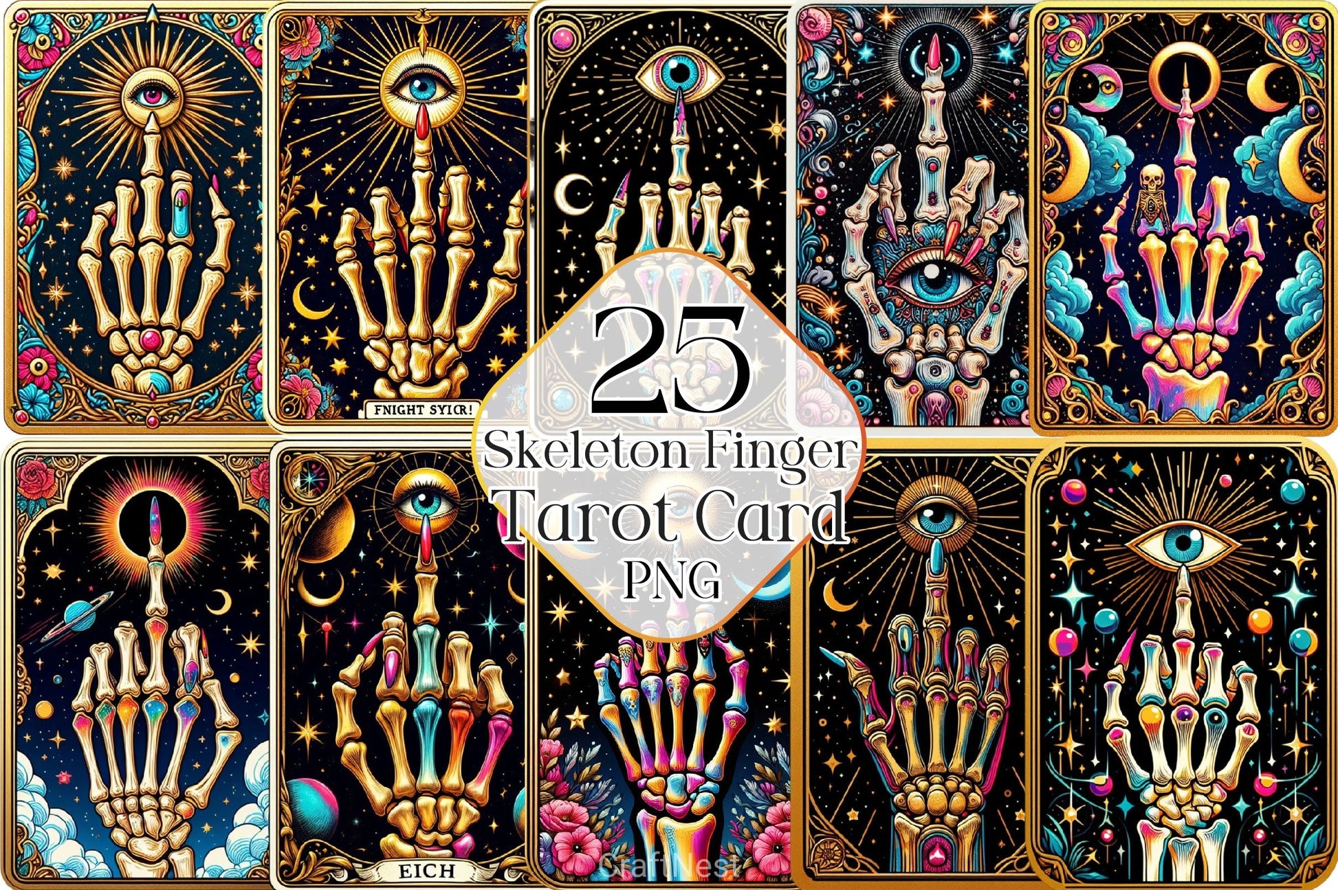 Funny Tarot Card With Skeleton Finger Clipart Bundle