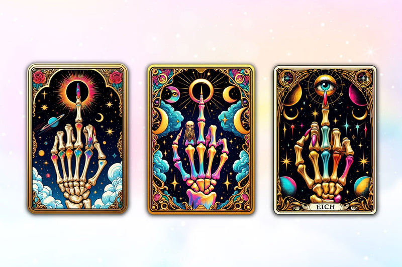Point with this Funny Tarot Card With Skeleton Finger Clipart Bundle, featuring humorous gothic fortune designs, perfect for comedy mystical crafts.