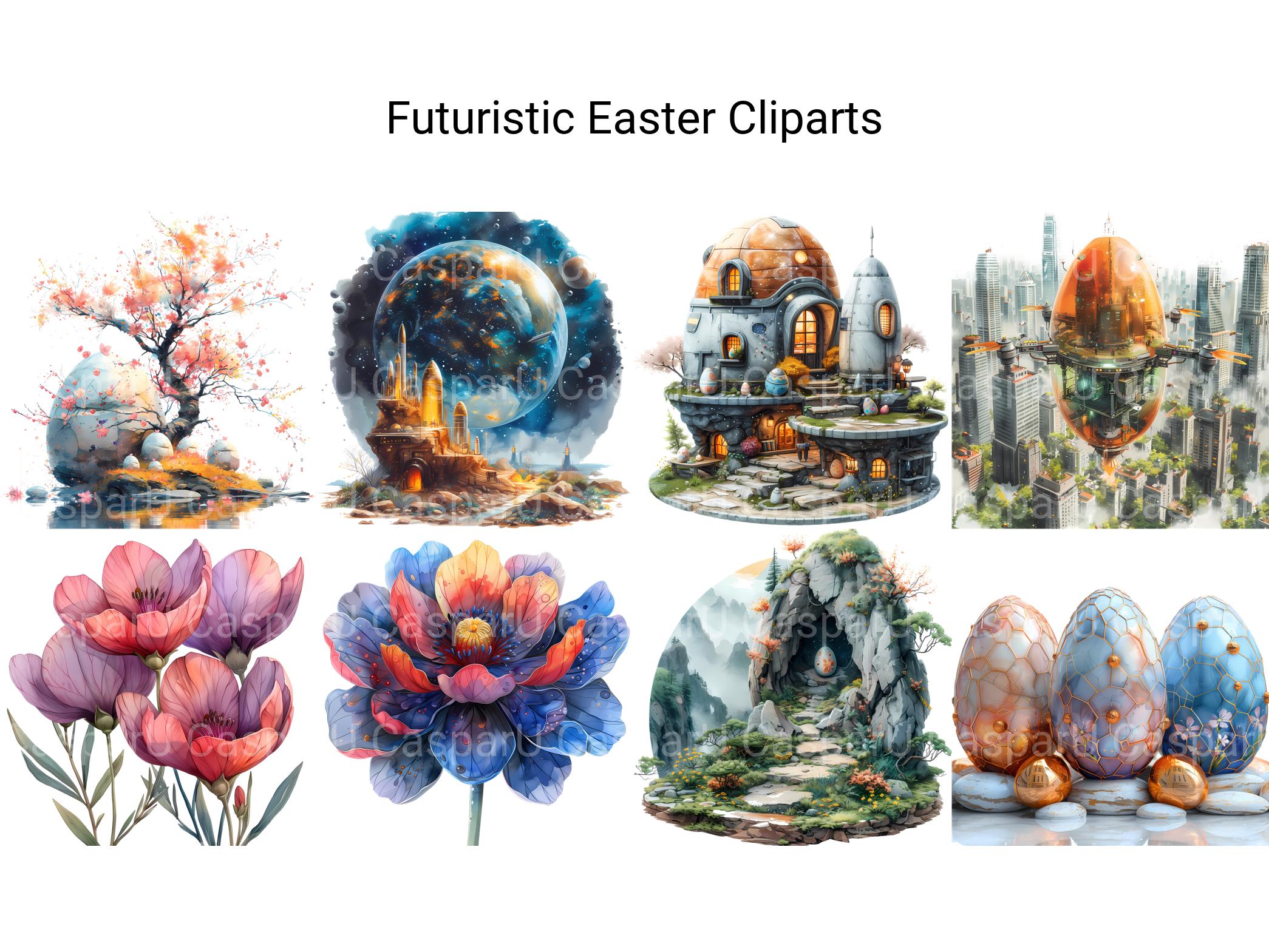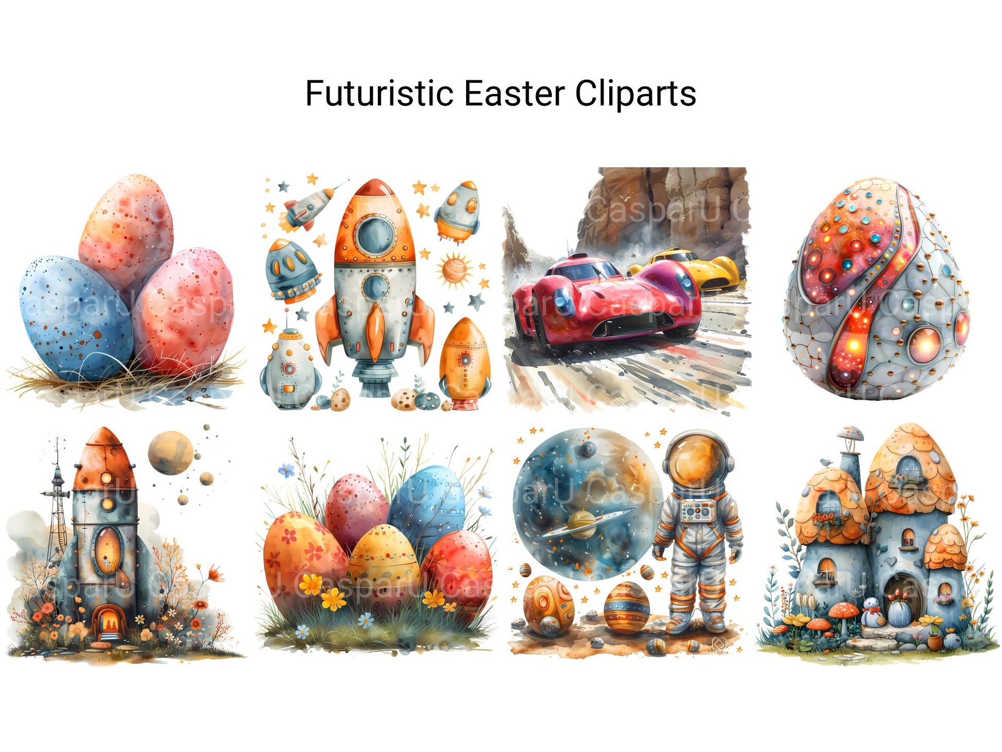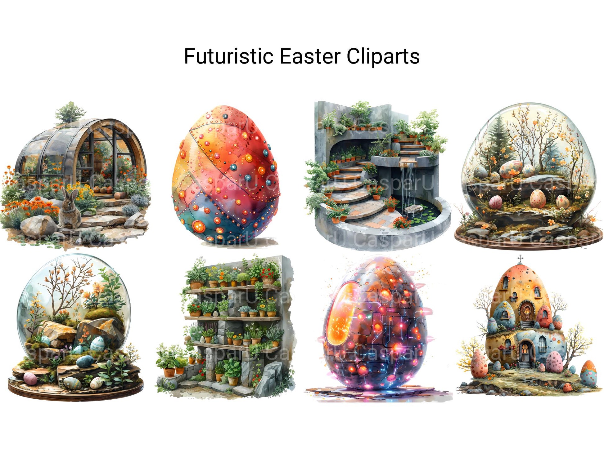 Transport your designs to the future with Futuristic Easter digital clip art, featuring futuristic Easter-themed illustrations, sleek designs, and cutting-edge motifs inspired by technology and innovation. These futuristic images capture the excitement and possibilities of Easter in the digital age, perfect for adding a modern twist to your projects. Let Futuristic Easter spark your imagination and inspire visions of Easter celebrations in the world of tomorrow, inviting viewers to embrace the future of Easter.
