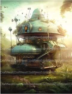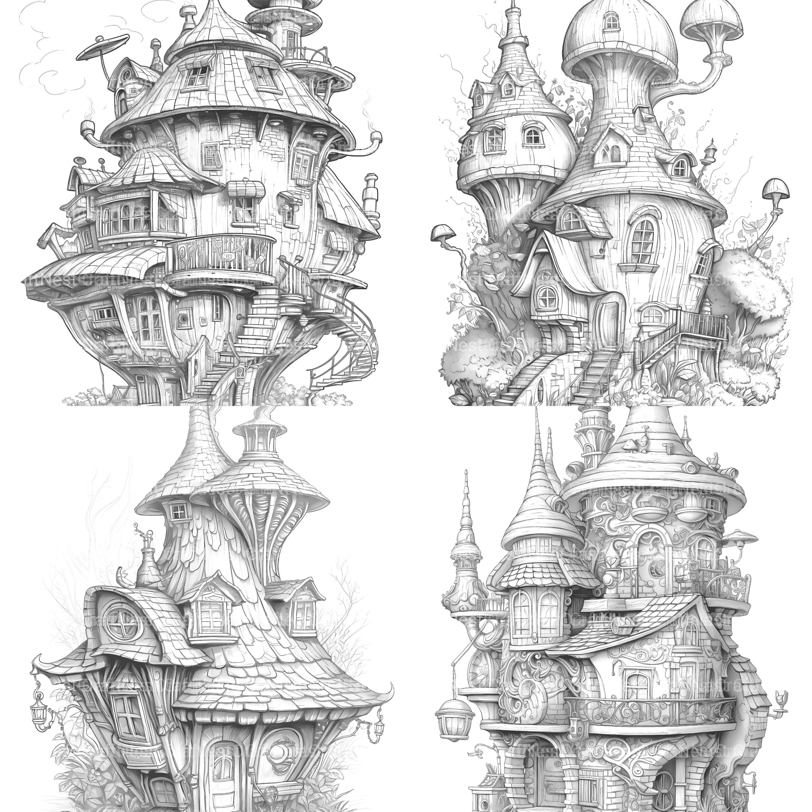 Unleash your creativity with the Futuristic Fairy House Coloring Book, featuring intricate designs of whimsical fairy homes, perfect for imaginative art projects and enchanting decor.