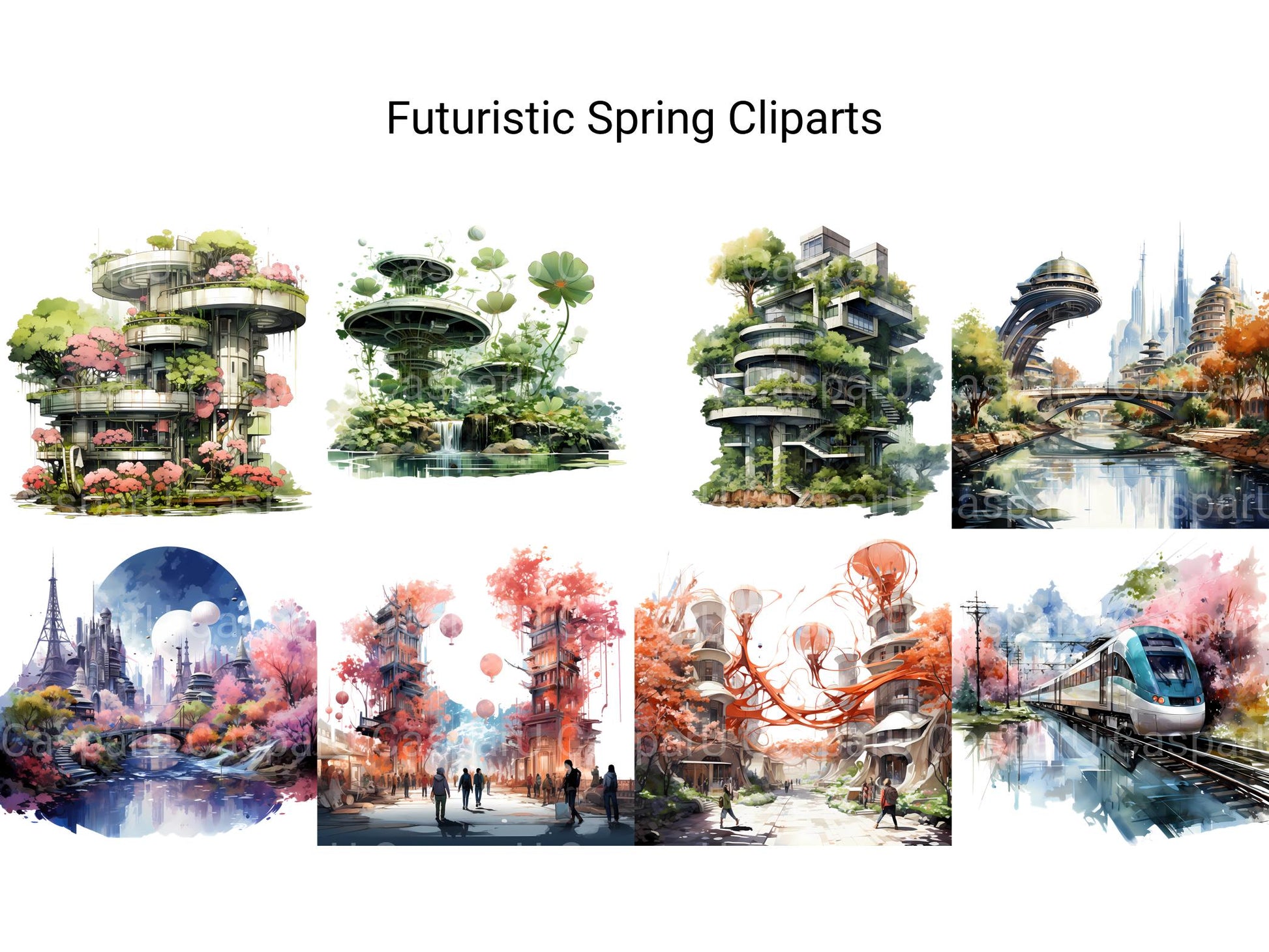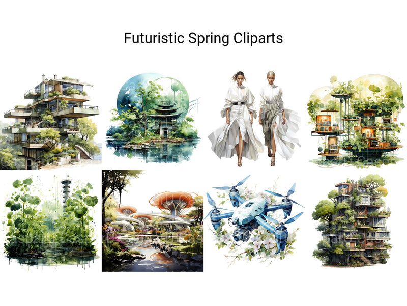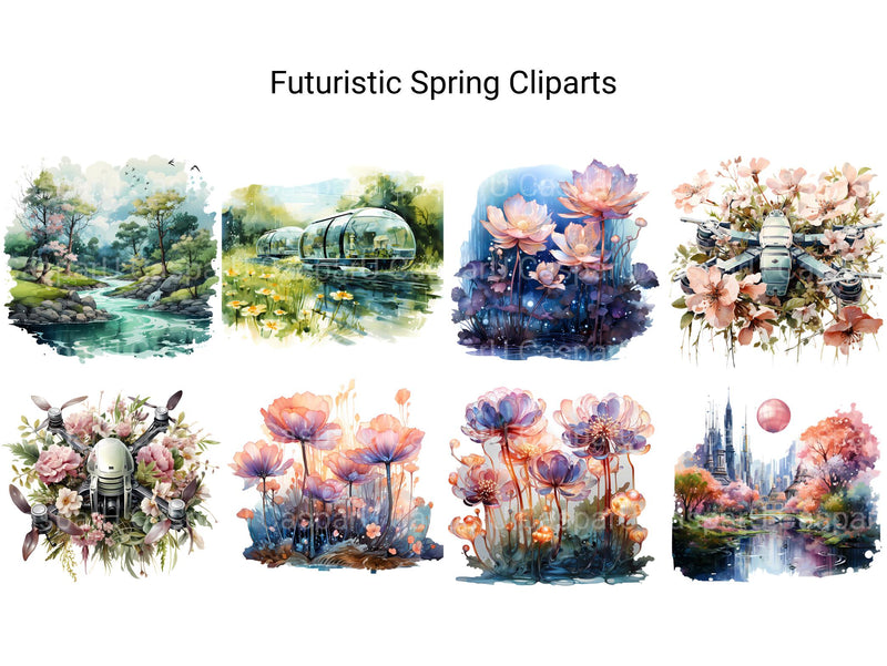 Explore the possibilities of tomorrow with Futuristic Spring digital clip art featuring sleek and innovative designs inspired by science fiction and technology. From futuristic cityscapes to cutting-edge gadgets, these dynamic images capture the spirit of progress and innovation, perfect for adding a futuristic flair to your spring projects. Let the bold lines and futuristic motifs of Futuristic Spring transport you to a world where imagination knows no limits, inviting viewers to embrace the future with open arms.
