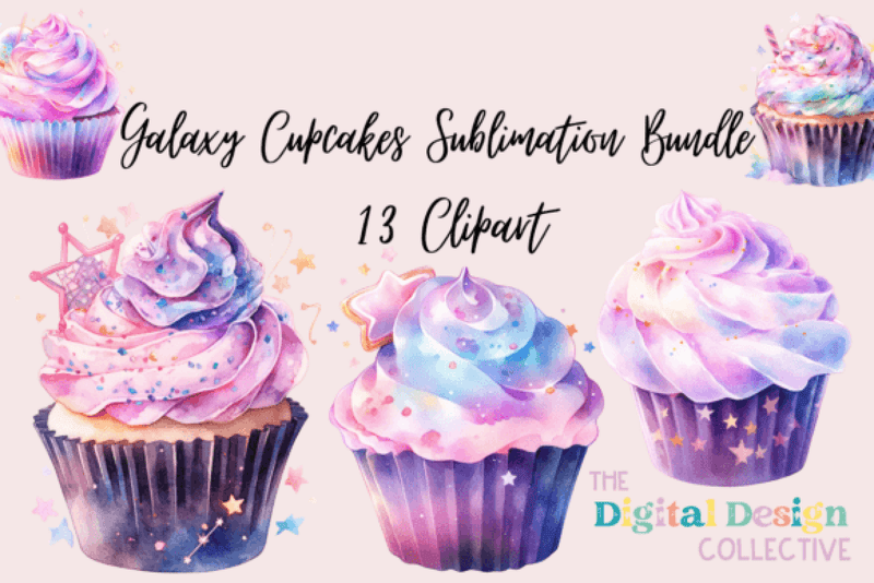 Galaxy Cupcakes Clipart Design Bundle