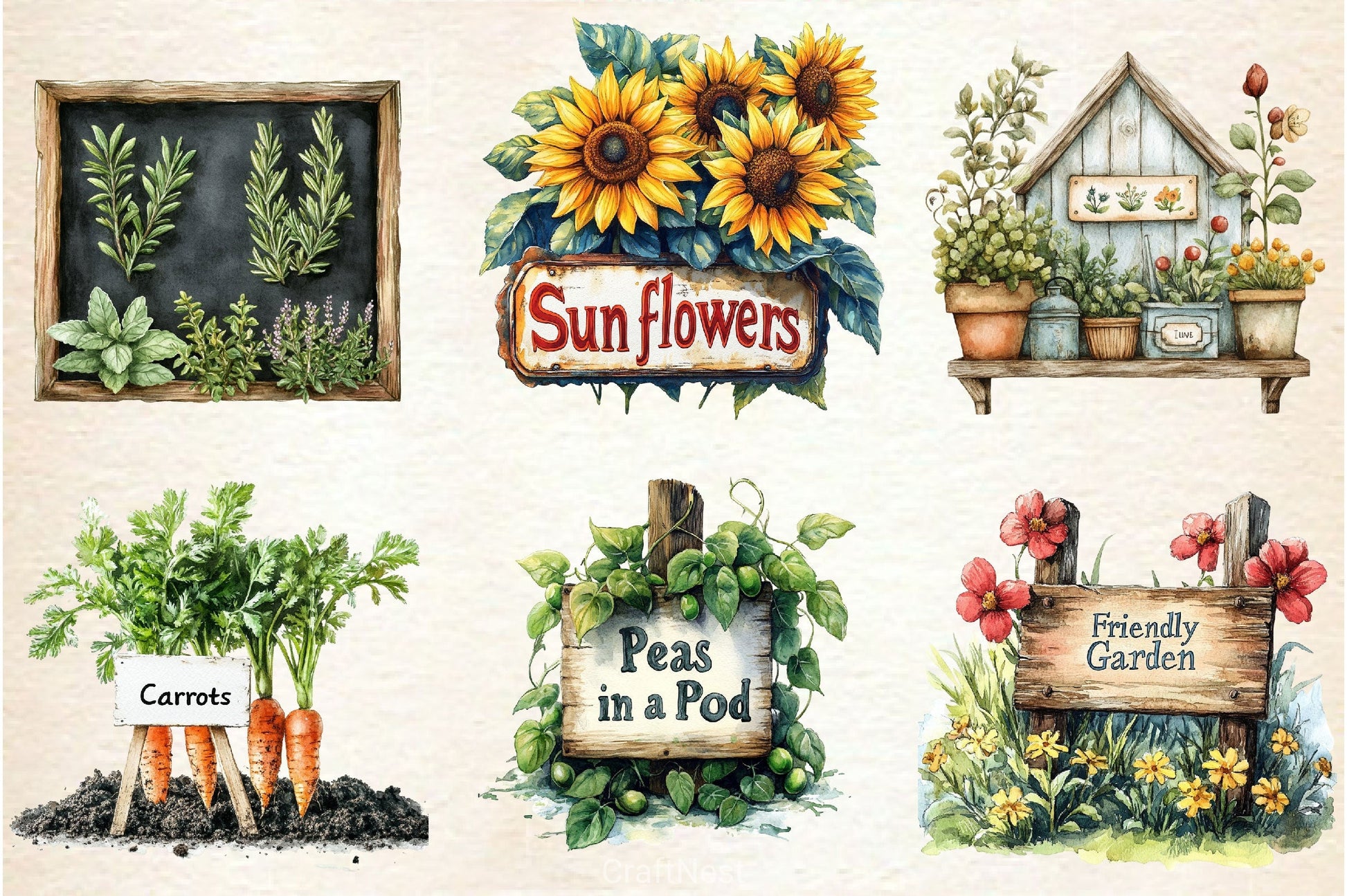 Label with this Garden Sign Clipart Bundle, featuring plant marker designs, perfect for garden communication crafts.