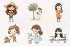 Plant with this Gardening Girl Clipart Bundle, featuring garden girl designs, perfect for gardening people crafts.