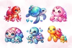 Gem Sea Turtle Mom And Baby Clipart Bundle 2