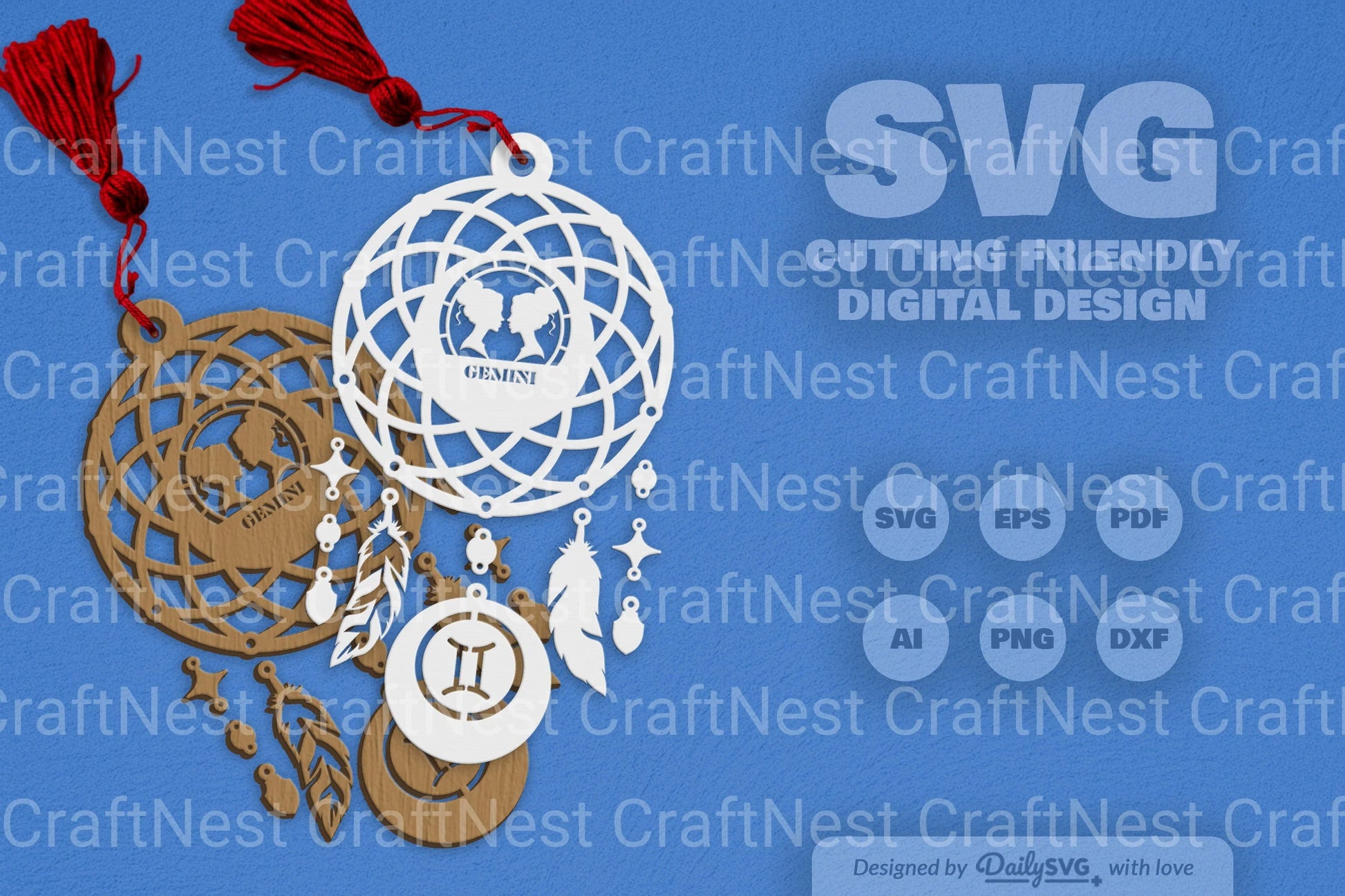 Capture dreams with the Gemini Dream Catcher Set SVG Bundle, featuring intricate designs perfect for personalized crafts, home decor, and unique gifts. Ideal for crafters and DIY enthusiasts seeking celestial inspiration.