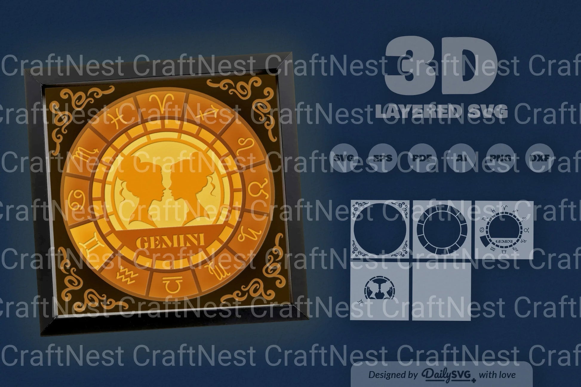 Discover the enchanting Gemini Zodiac 3D Shadow Box Papercut SVG Bundle, perfect for creating stunning, personalized decor. Ideal for astrology enthusiasts, this bundle offers intricate designs that capture the essence of the Gemini sign, making it a must-have for unique craft projects.