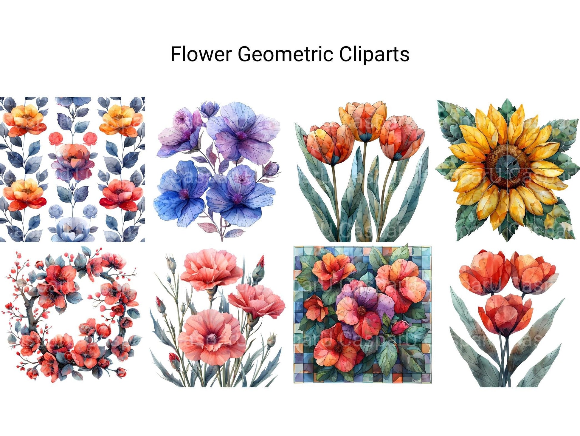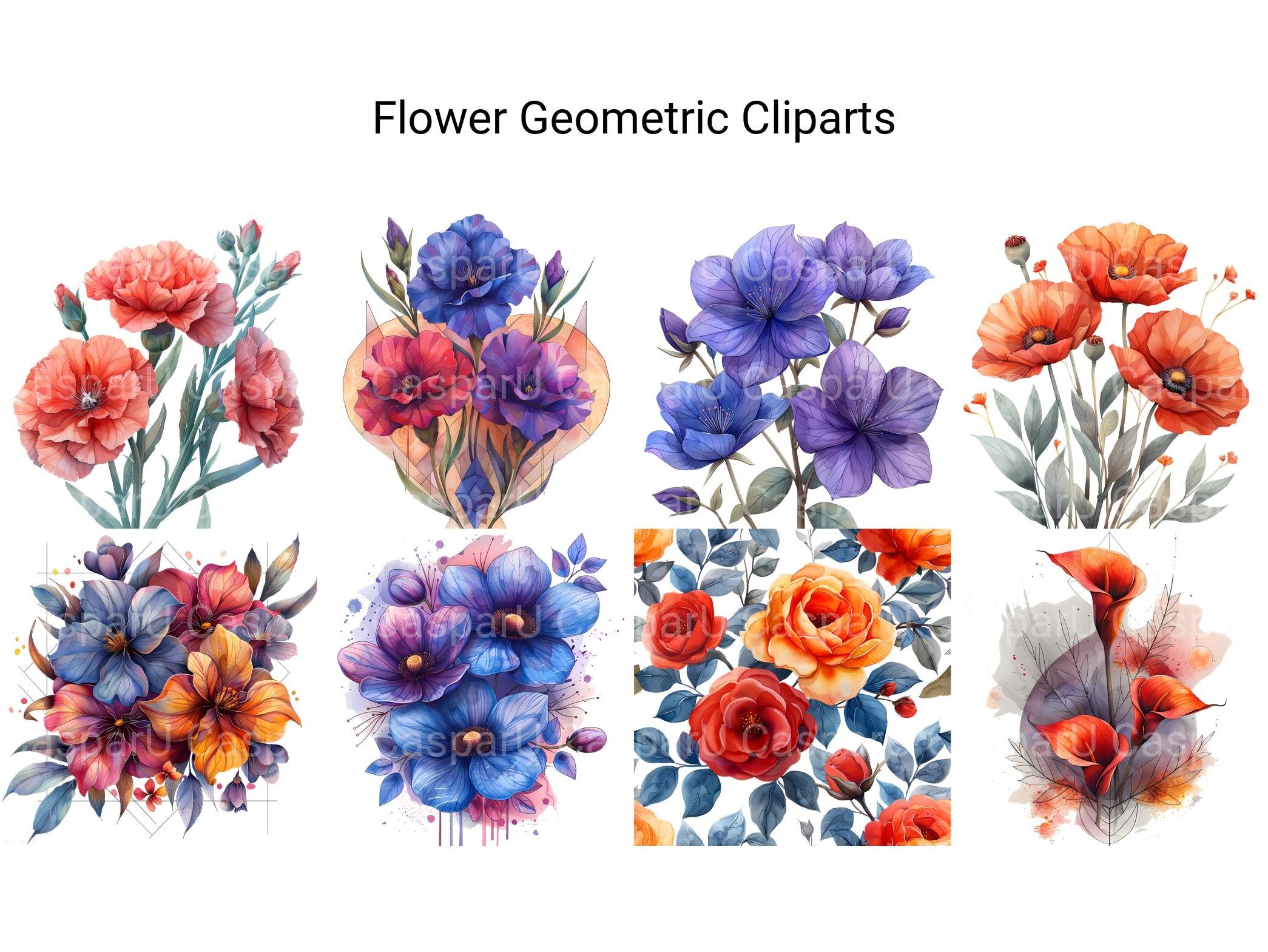 Explore the harmonious blend of nature and geometry with our digital clip art collection. These innovative clip arts feature floral elements infused with geometric patterns, offering a modern twist on traditional flower designs. Perfect for adding a contemporary flair to your digital artwork, prints, and invitations, these geometric flower clip arts will inspire creativity and captivate your audience with their unique style.