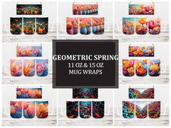 Explore the balance of form and function with our geometric spring digital mug wraps. These sophisticated designs feature geometric shapes and botanical elements, capturing the essence of springtime renewal in a fusion of modern elegance and natural beauty, making them a stylish addition to your mug collection and a perfect way to start your day with geometric flair.