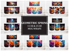 Elevate your mornings with the allure of geometry and nature with our geometric spring digital mug wraps. These contemporary designs feature geometric patterns inspired by floral motifs, capturing the essence of springtime renewal in a modern and stylish way, making them a chic addition to your mug collection and a perfect way to embrace the beauty of the season.