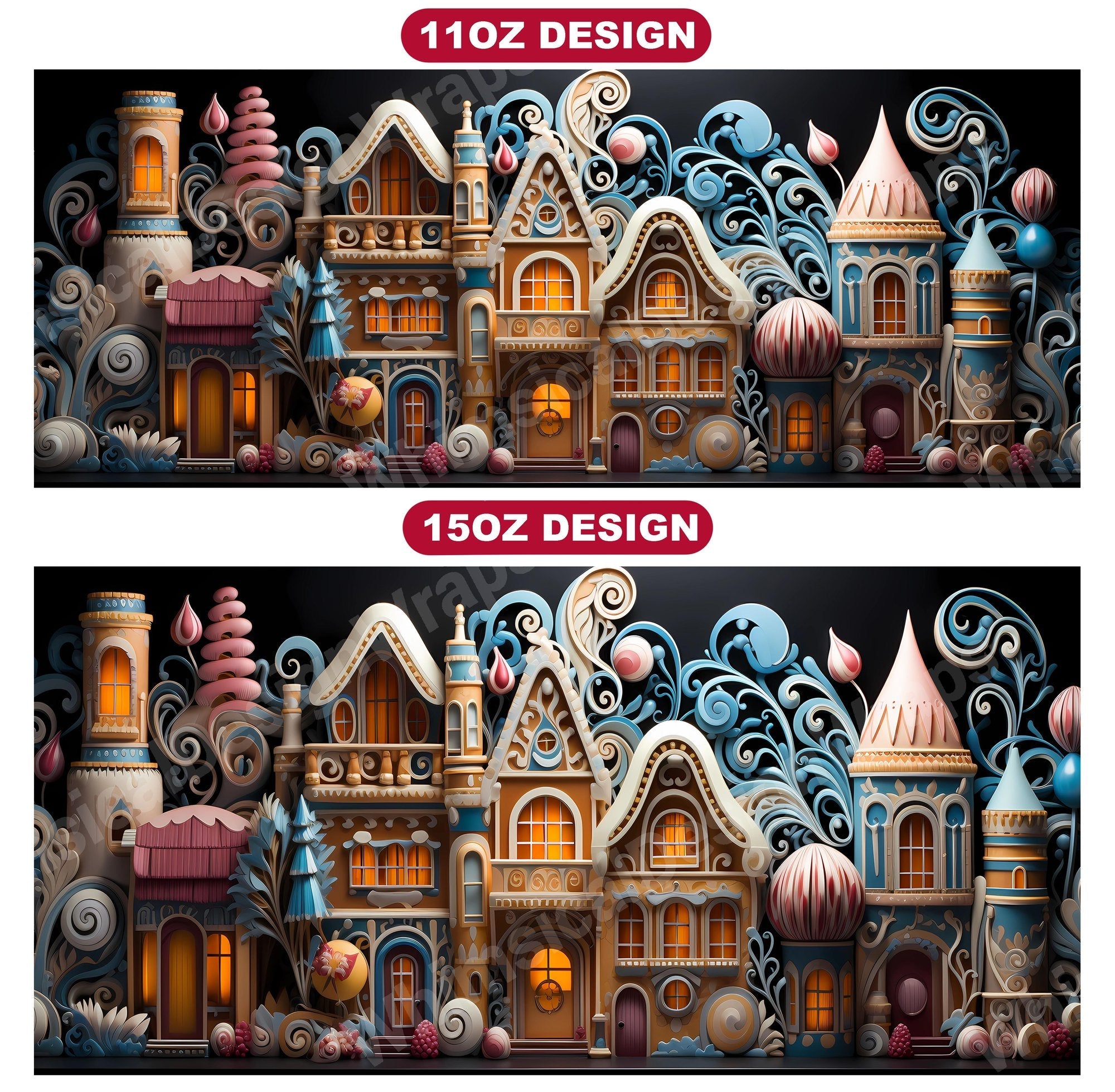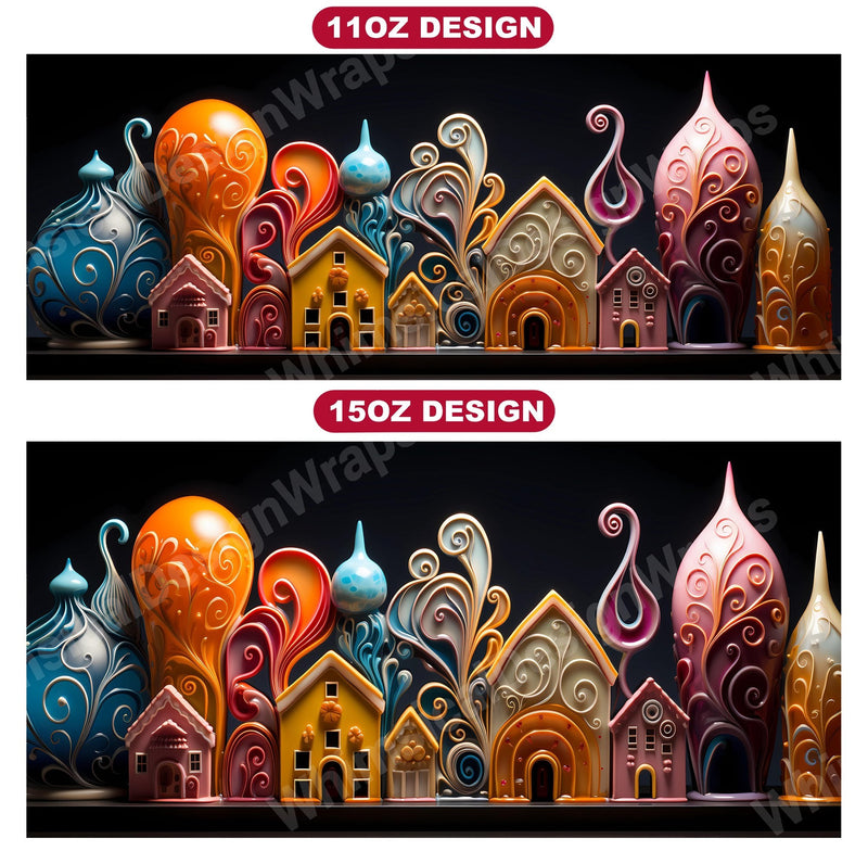 Indulge in the sweetness of the season with our gingerbread house digital mug wraps. These delightful designs feature charming gingerbread houses adorned with candy and icing, evoking the warmth and nostalgia of holiday baking, making them a deliciously festive addition to your holiday mug collection.
