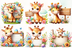 Giraffe Spring Flowers Clipart Bundle 2