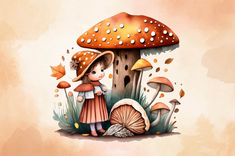 Girl With Mushrooms Autumn Fall Fairy Clipart Bundle