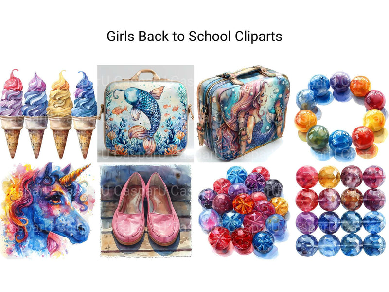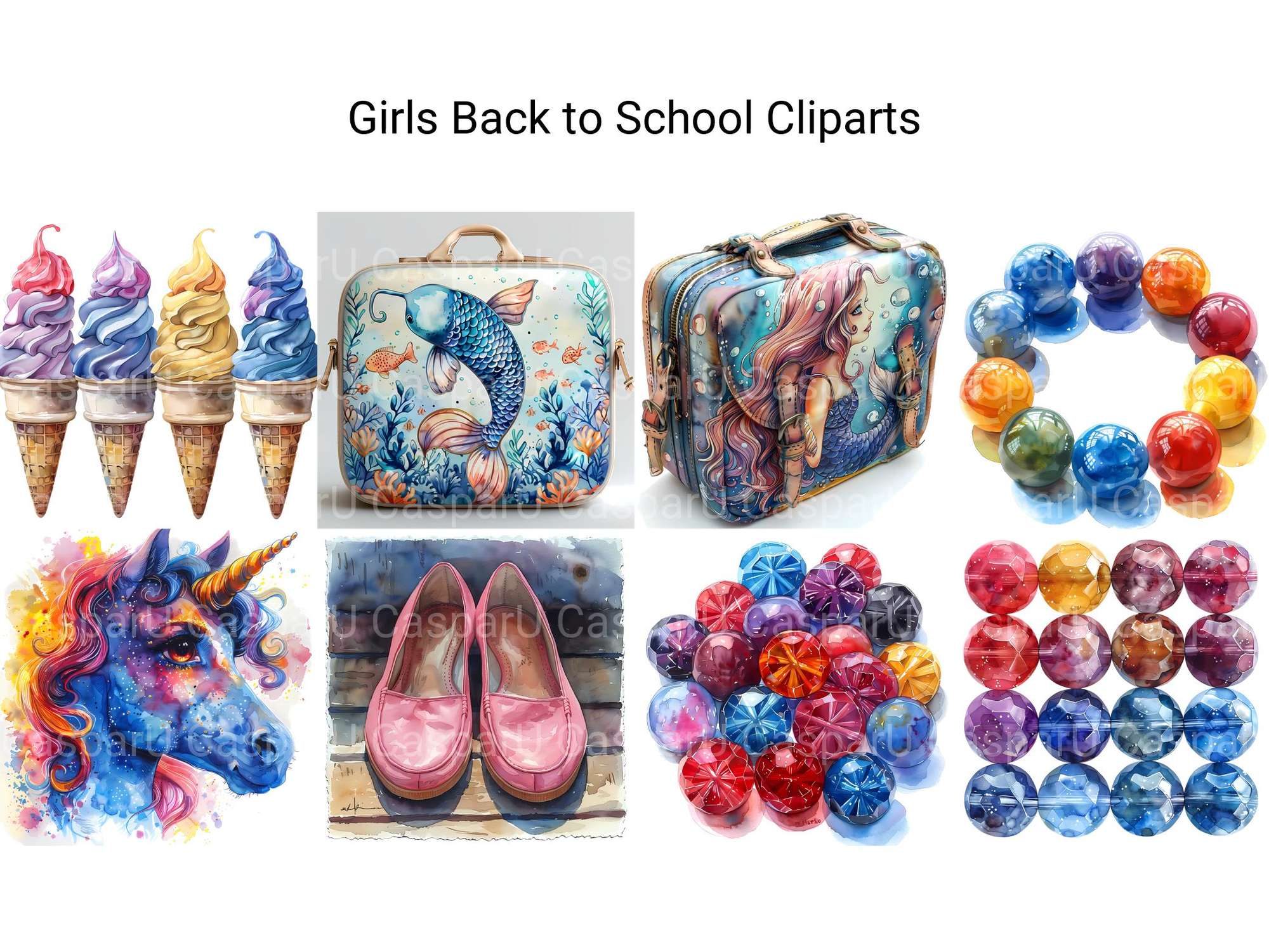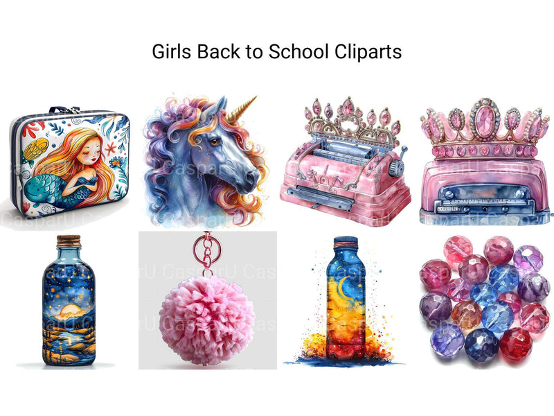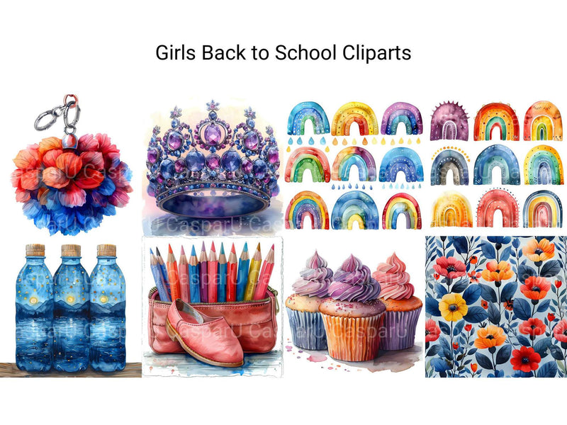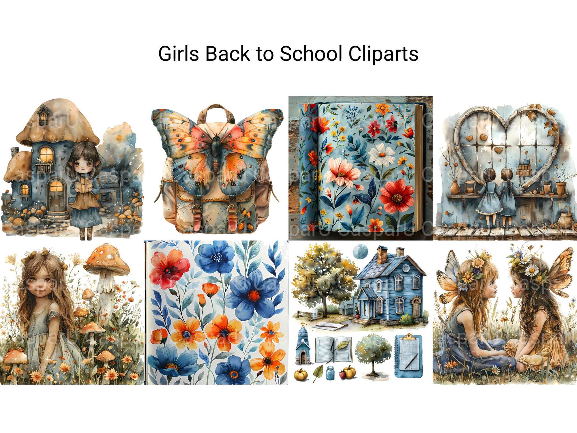 Celebrate the energy and enthusiasm of girls heading back to school with this collection of cliparts. Featuring playful designs and vibrant colors, these illustrations are perfect for girl-focused projects.