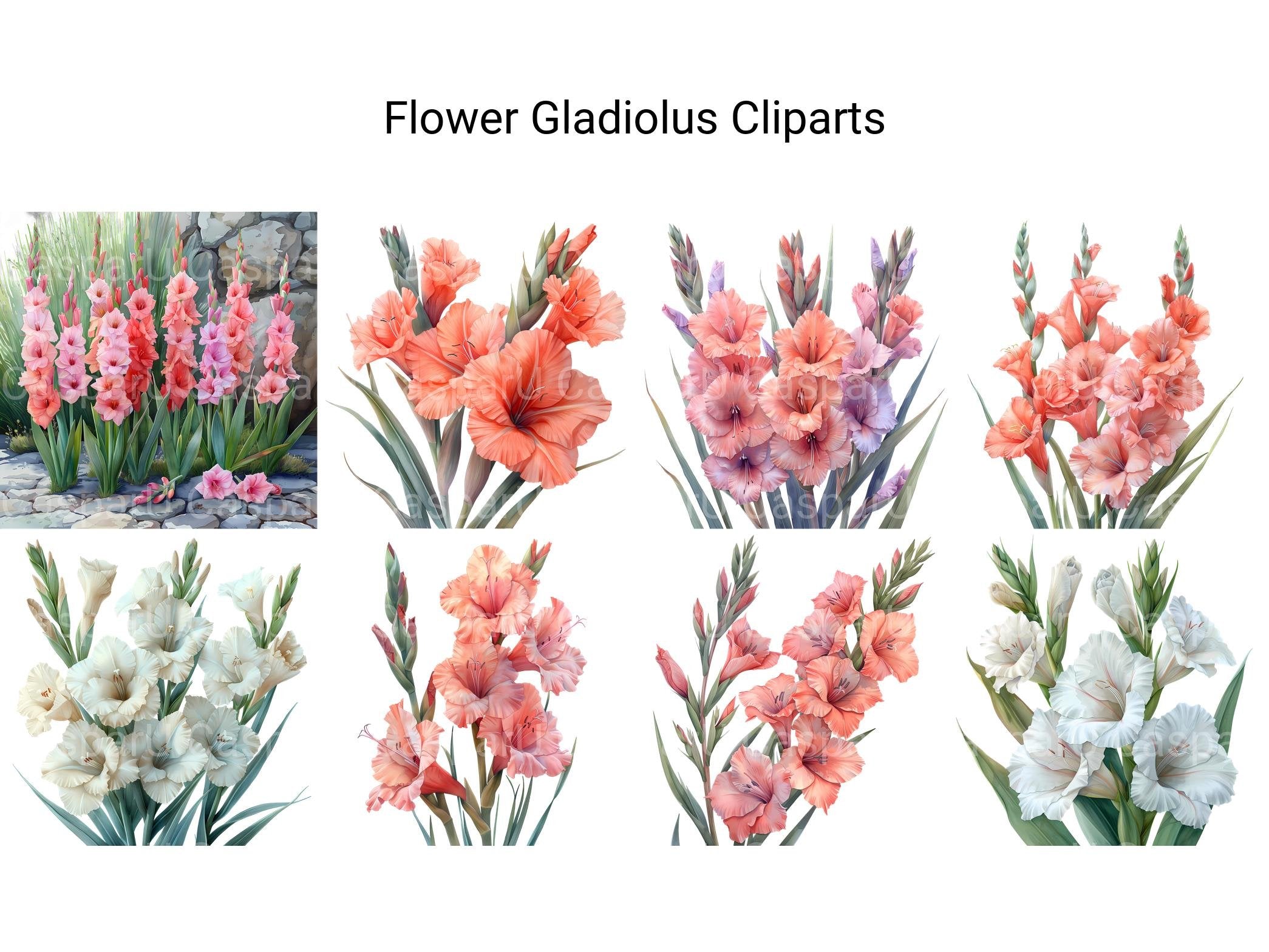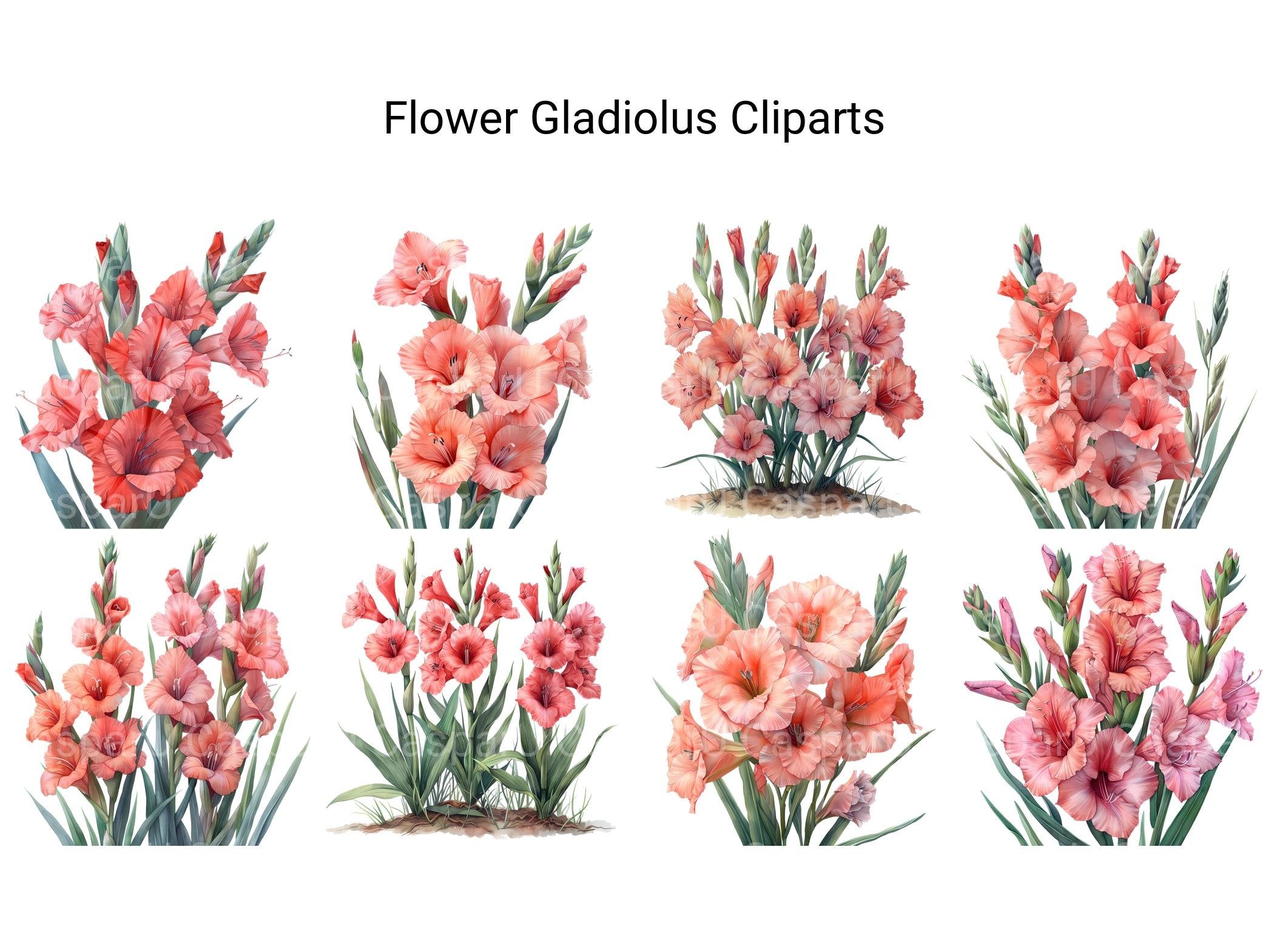 Unleash the bold beauty of gladiolus flowers with our digital clip art assortment. These striking clip arts capture the majestic presence and vibrant colors of gladiolus blooms, adding a touch of drama to your digital designs, cards, and decorations. Whether you're creating floral arrangements or designing digital art, these gladiolus clip arts will make a statement and elevate your projects with their elegance and grandeur.