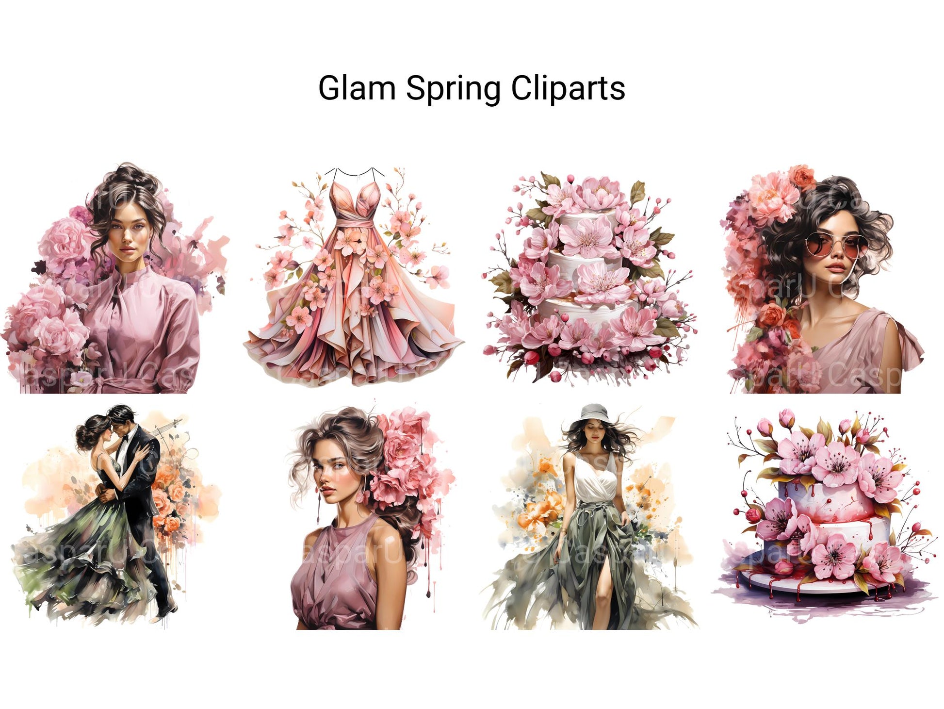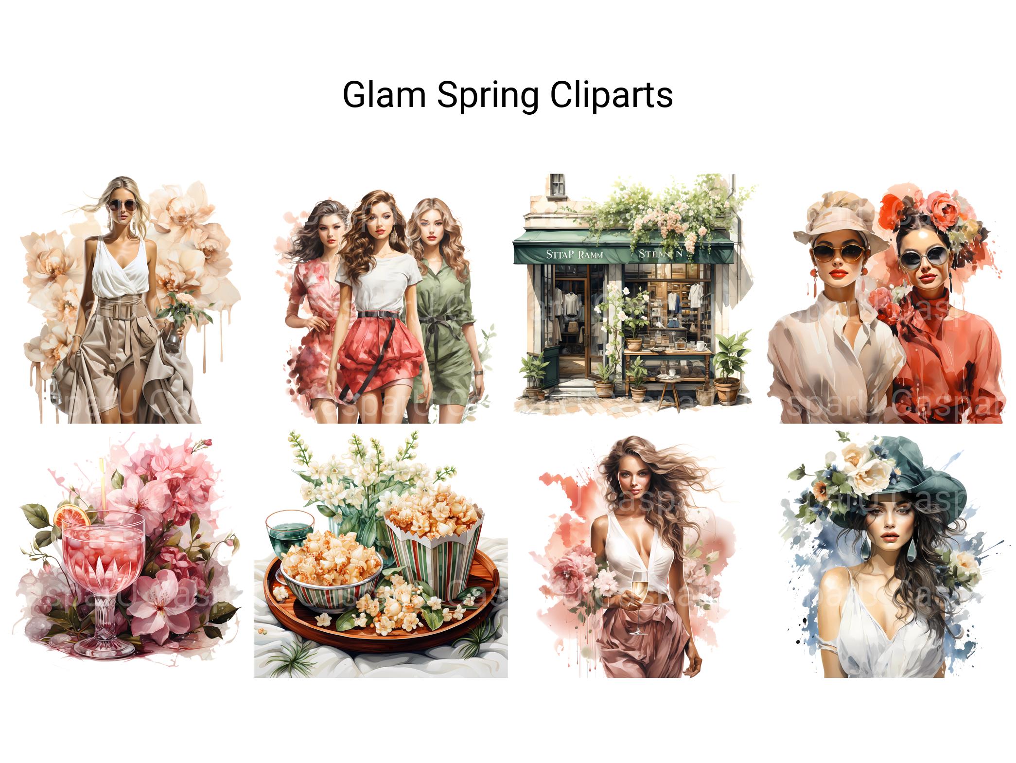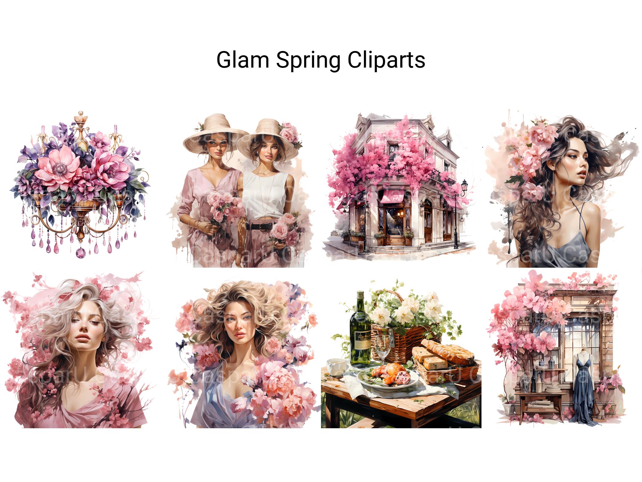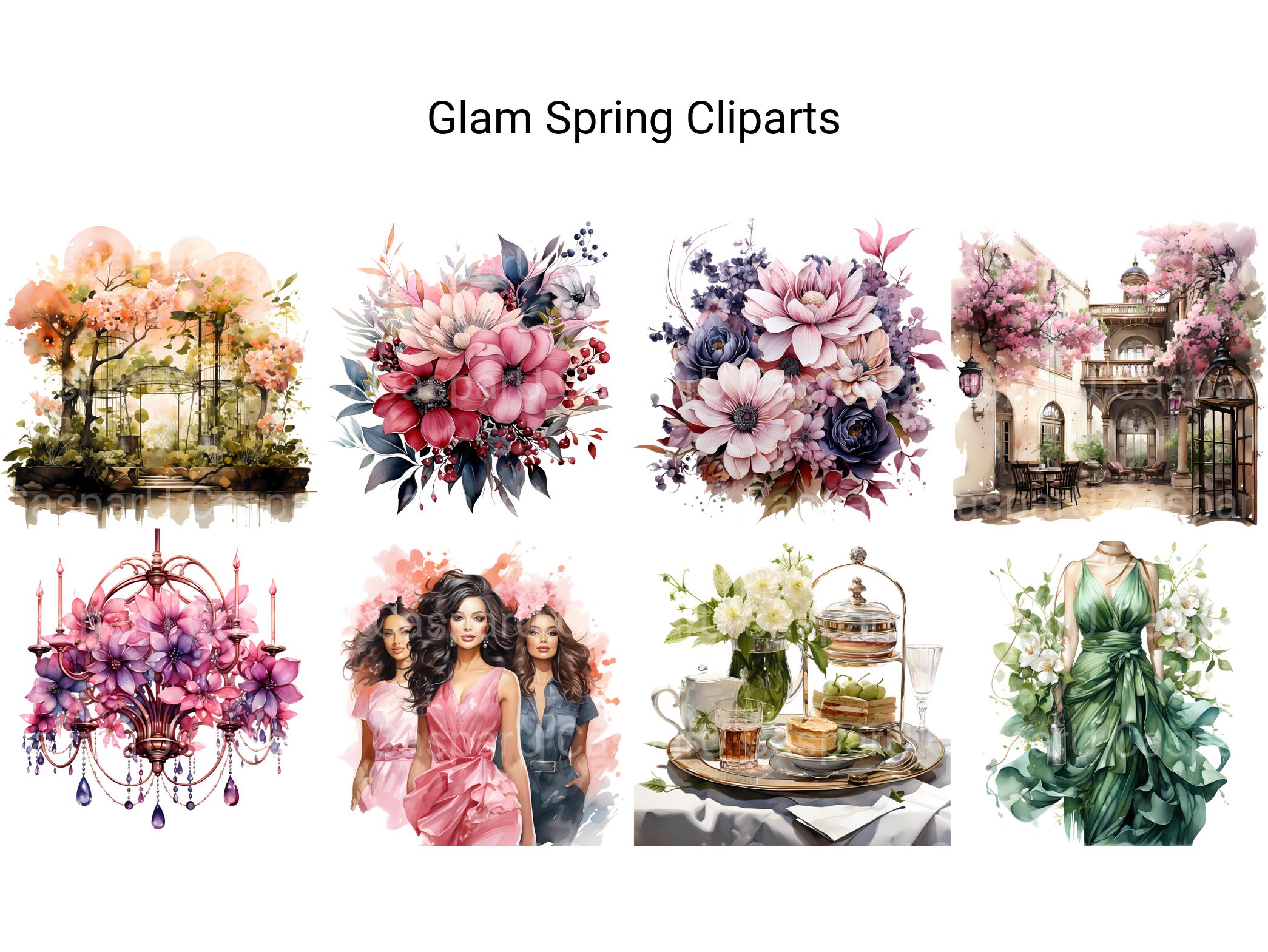Add a touch of glamour and sophistication to your spring projects with Glam Spring digital clip art featuring luxurious and opulent designs. From sparkling diamonds to lavish textures, these glamorous images capture the allure of high fashion and elegance, perfect for adding a touch of luxury to your creations. Let the shimmering glamour of Glam Spring elevate your designs and infuse them with the glitz and glamour of a red carpet affair, inviting viewers to indulge in the splendor of the season.