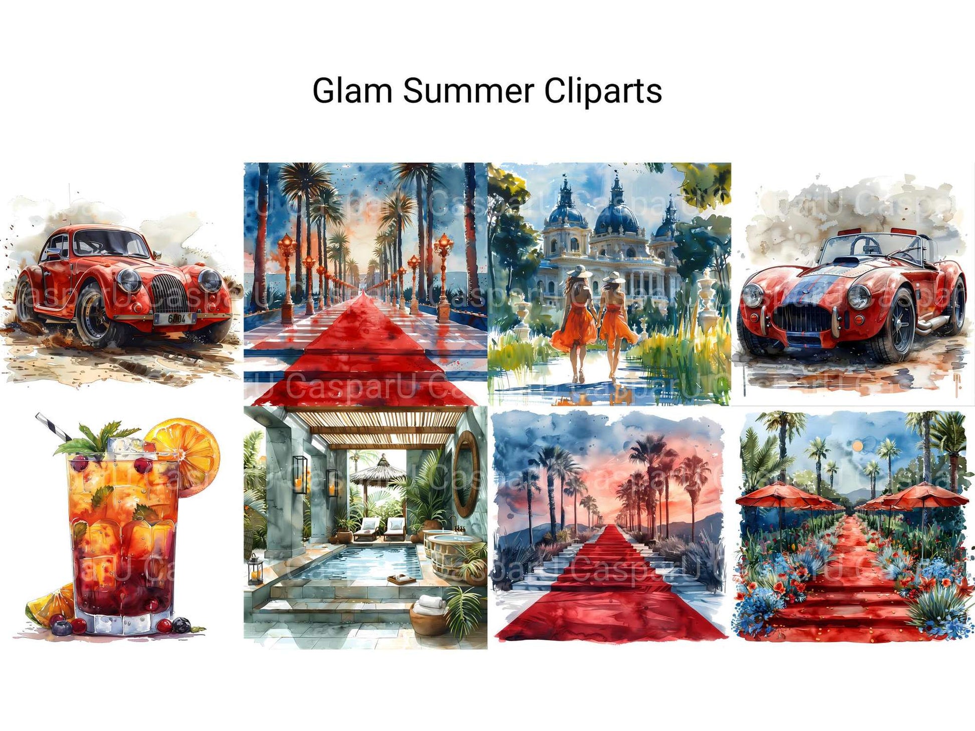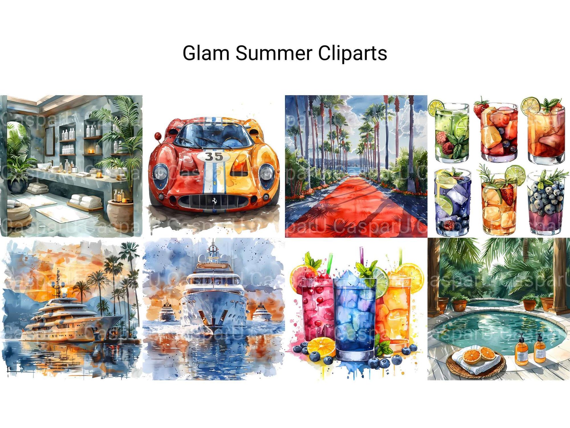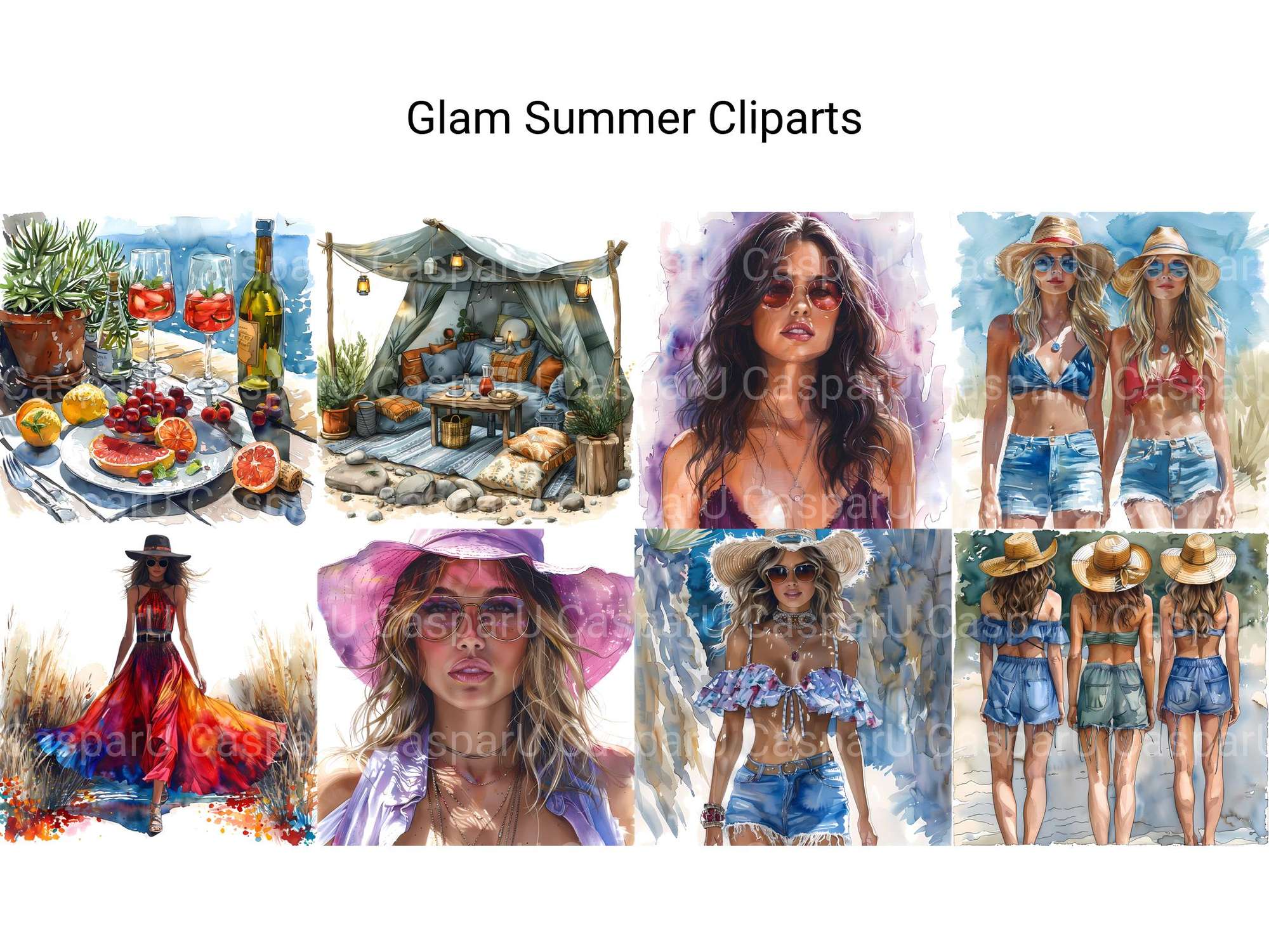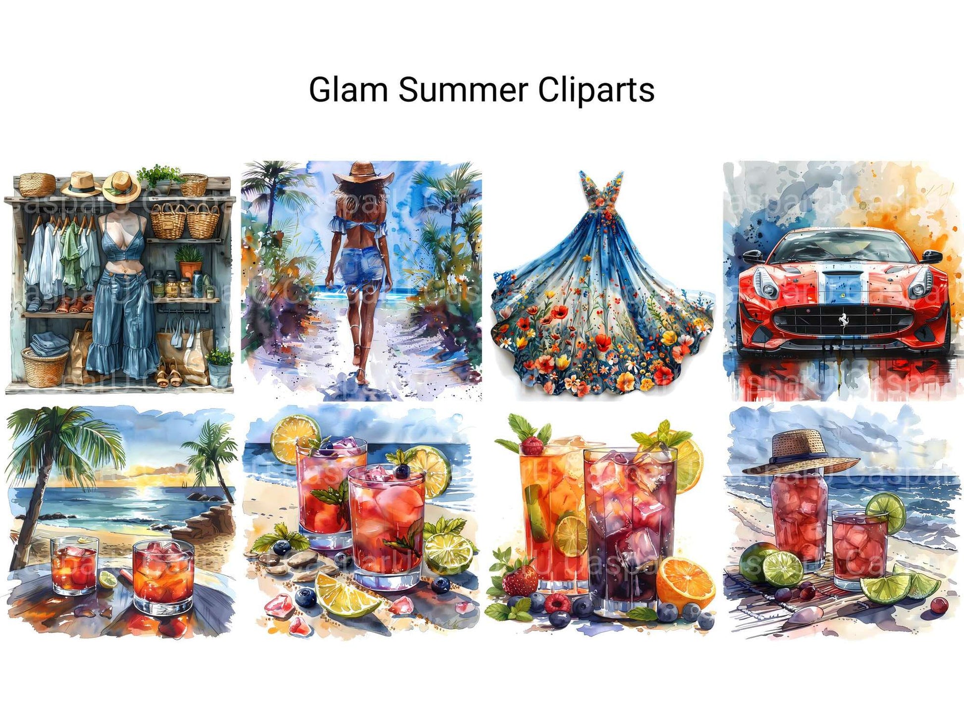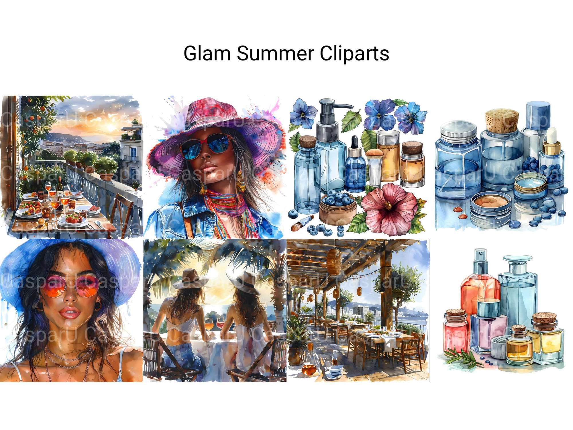 Add a touch of luxury to your creations with our Glam Summer clipart, showcasing glamorous designs, sparkling elements, and stylish motifs. These illustrations capture the essence of a chic and sophisticated summer, ideal for projects that exude elegance and charm.