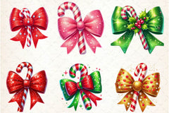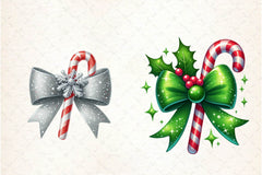 Glitter Christmas Bow Candy Cane Clipart Bundle