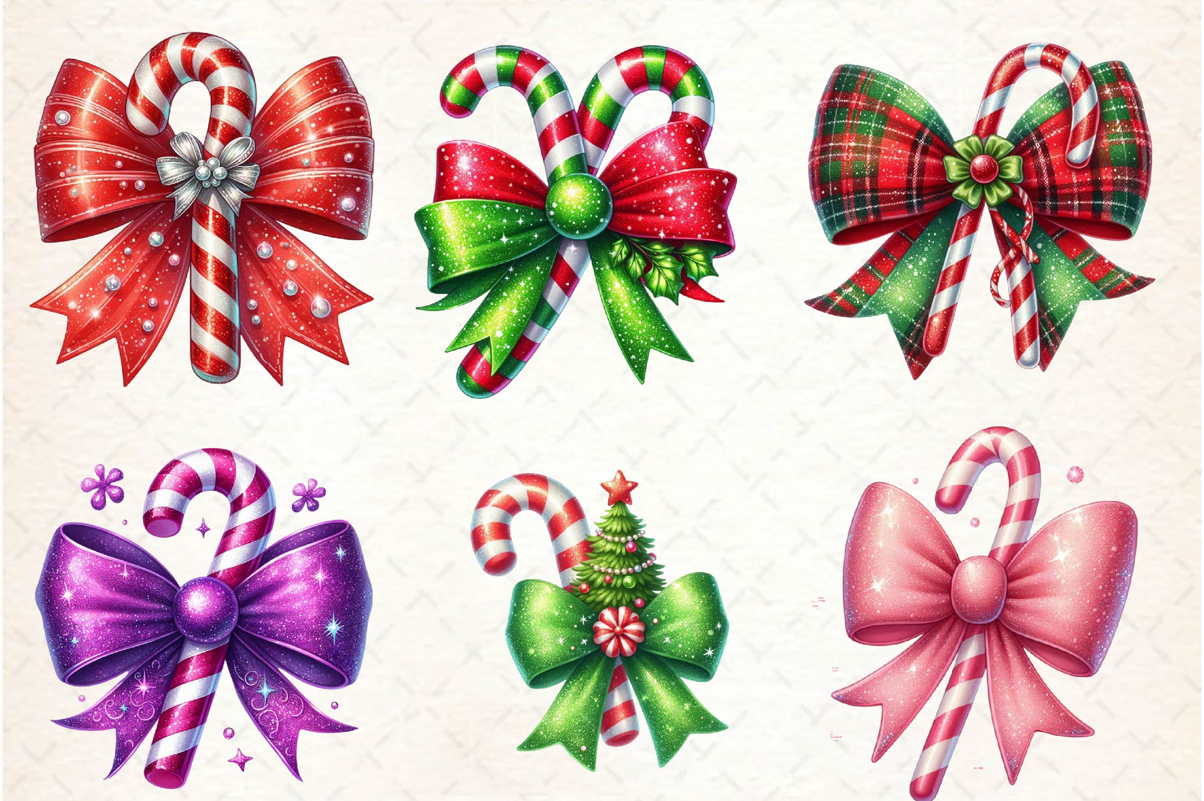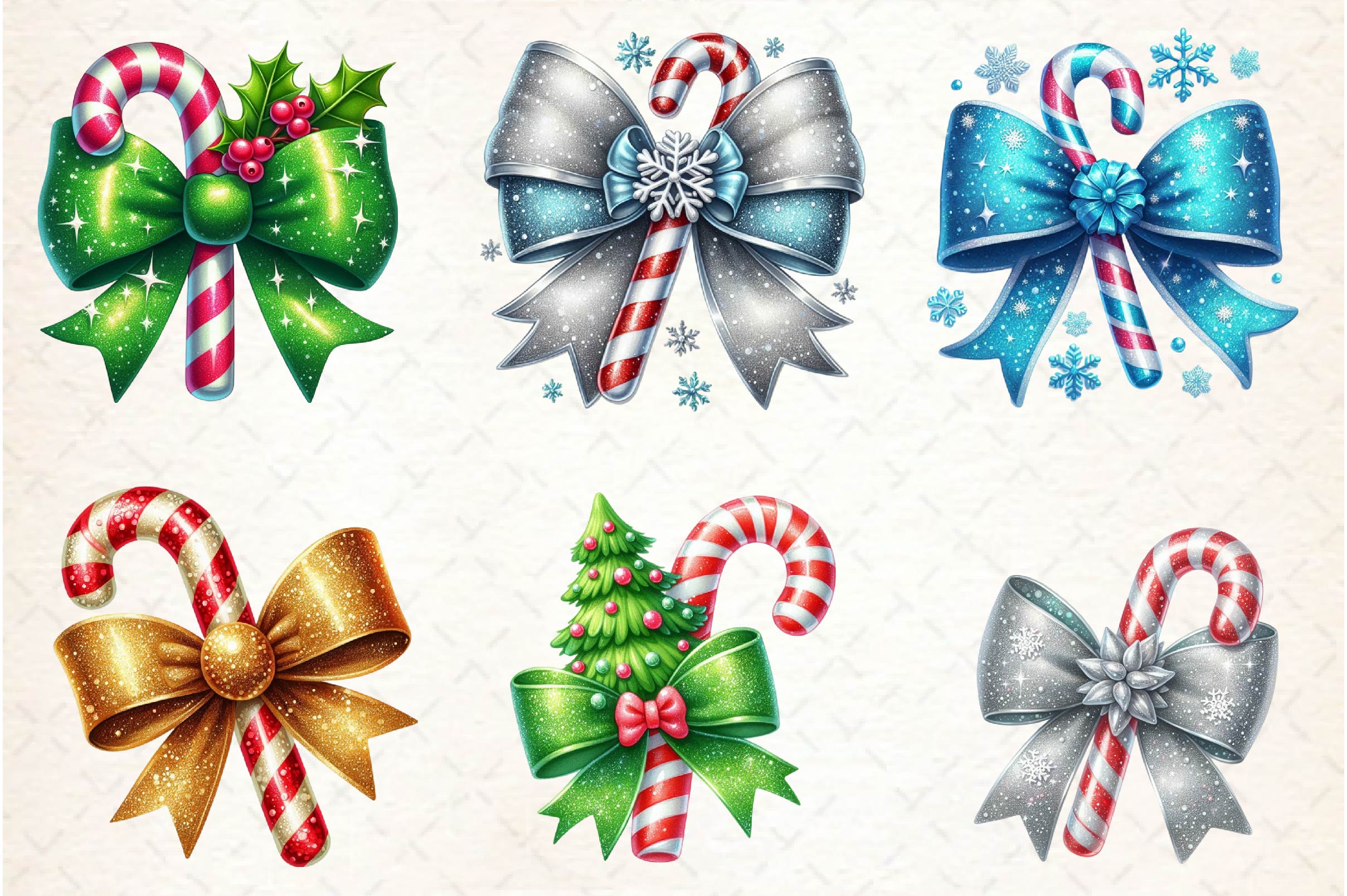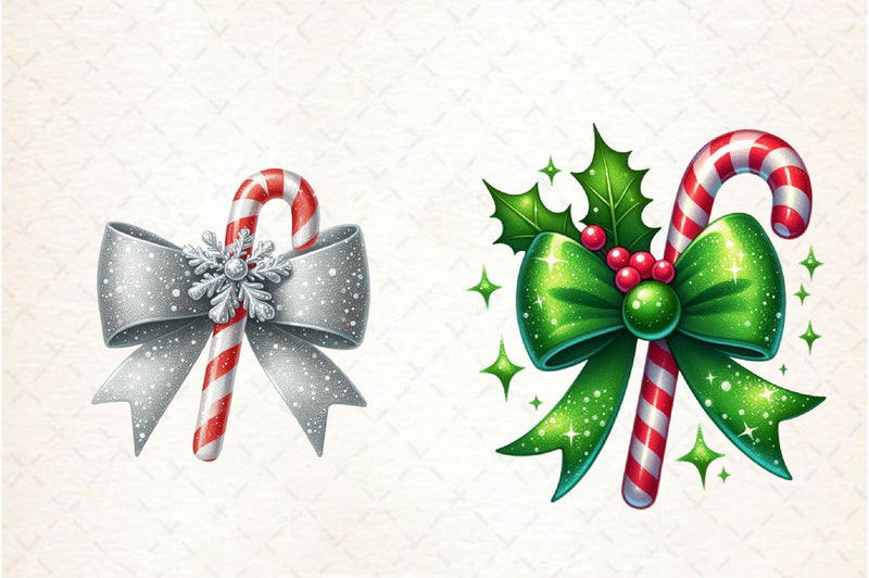 Sparkle with this Glitter Christmas Bow Candy Cane Clipart Bundle, featuring glamorous candy designs, ideal for shiny Christmas crafts.