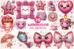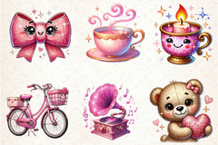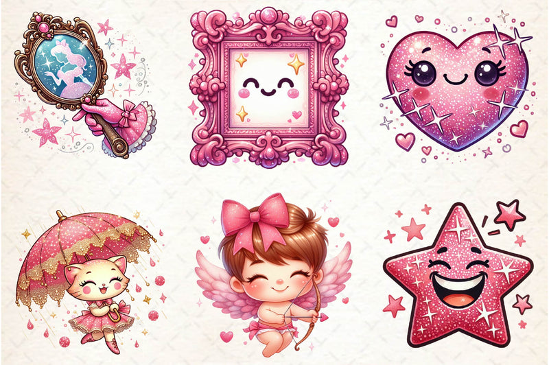 Sparkle with this Glitter Pink Happy Valentine Clipart Bundle, featuring glamorous pink designs, ideal for glittery Valentine's crafts.