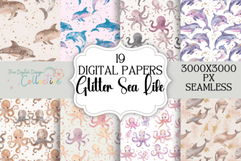 Enhance your creative projects with the Glitter Sea Life Seamless Patterns Collection, featuring stunning ocean-inspired designs. Perfect for digital scrapbooking, fabric prints, and unique crafts, these patterns bring a touch of shimmering marine magic to any creation.