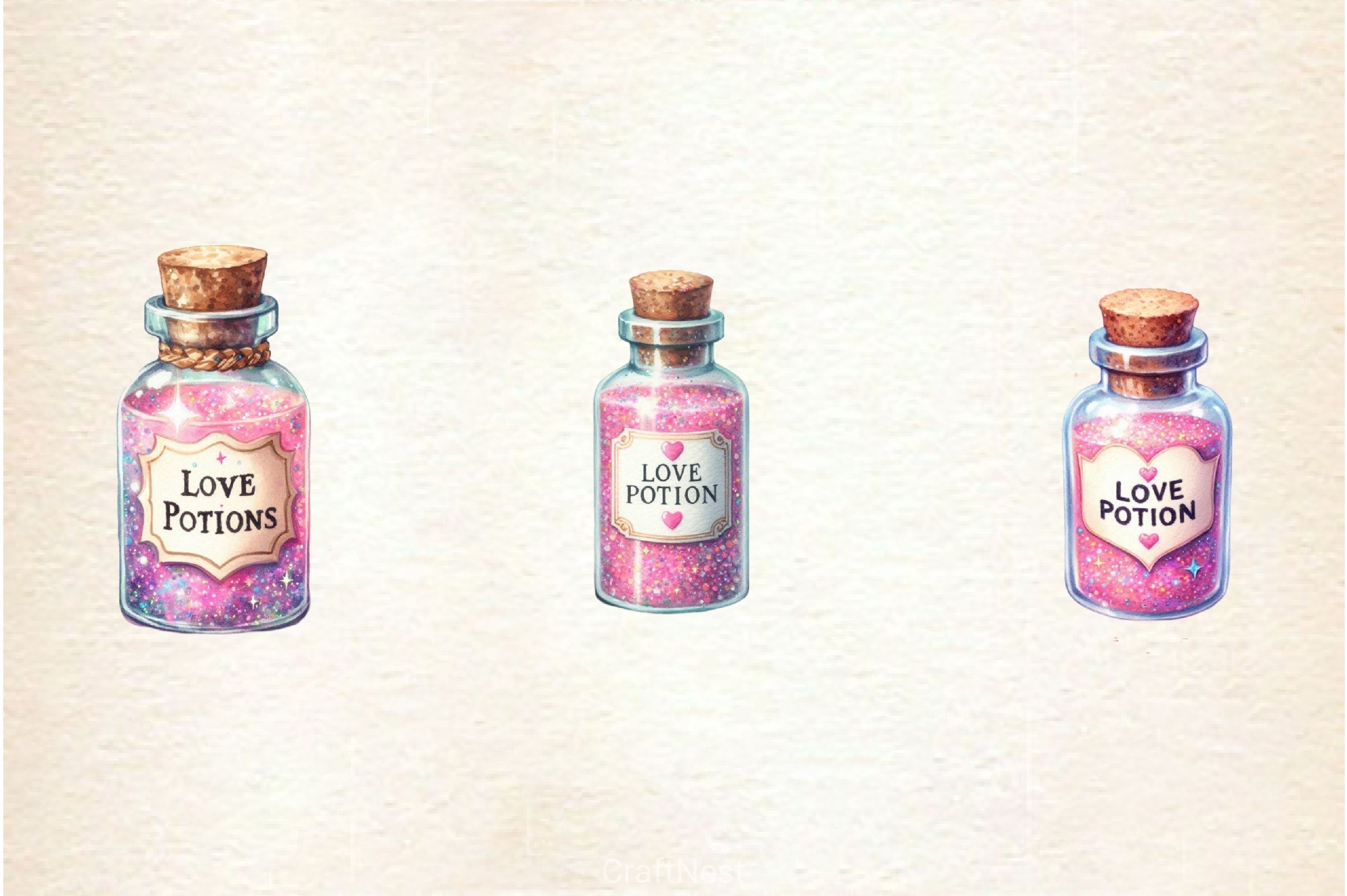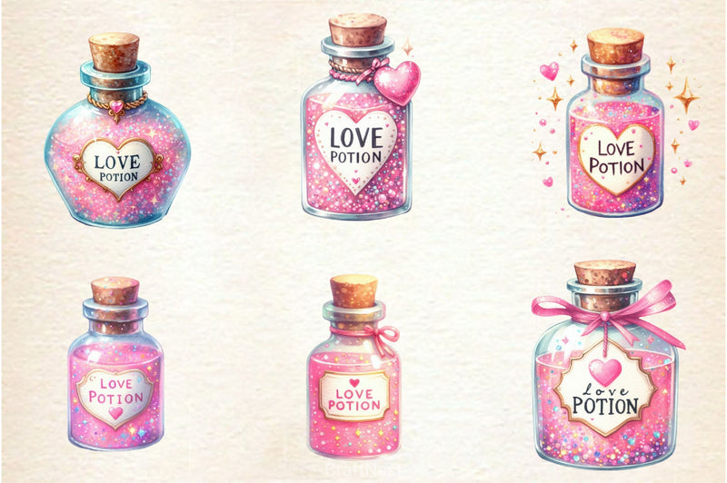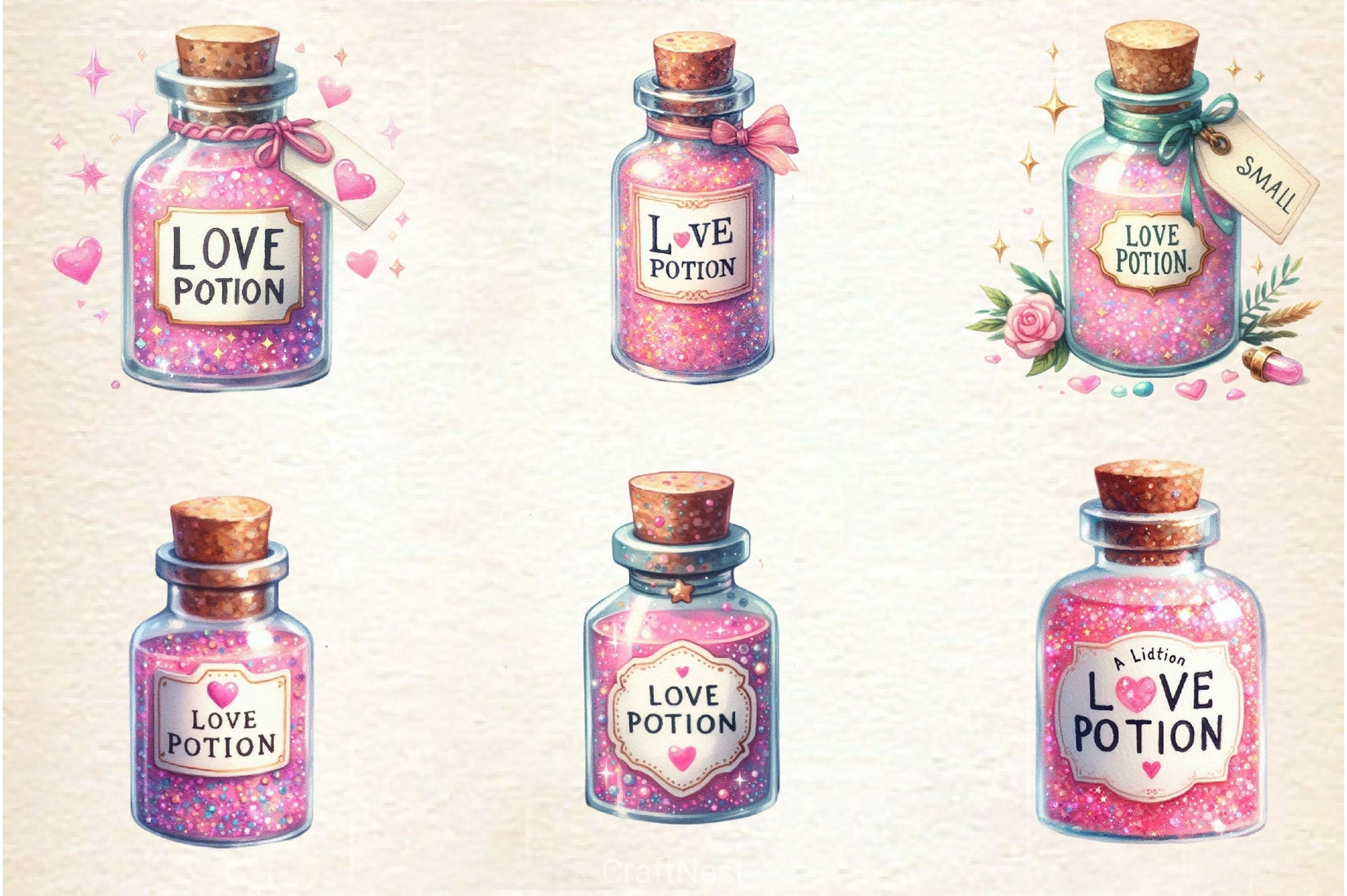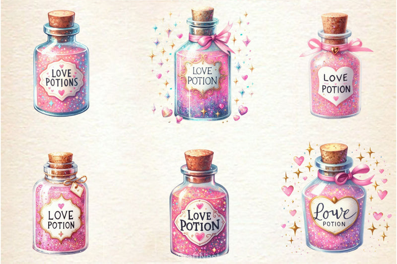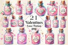 Sparkling love potion designs perfect for magical Valentine's Day projects.