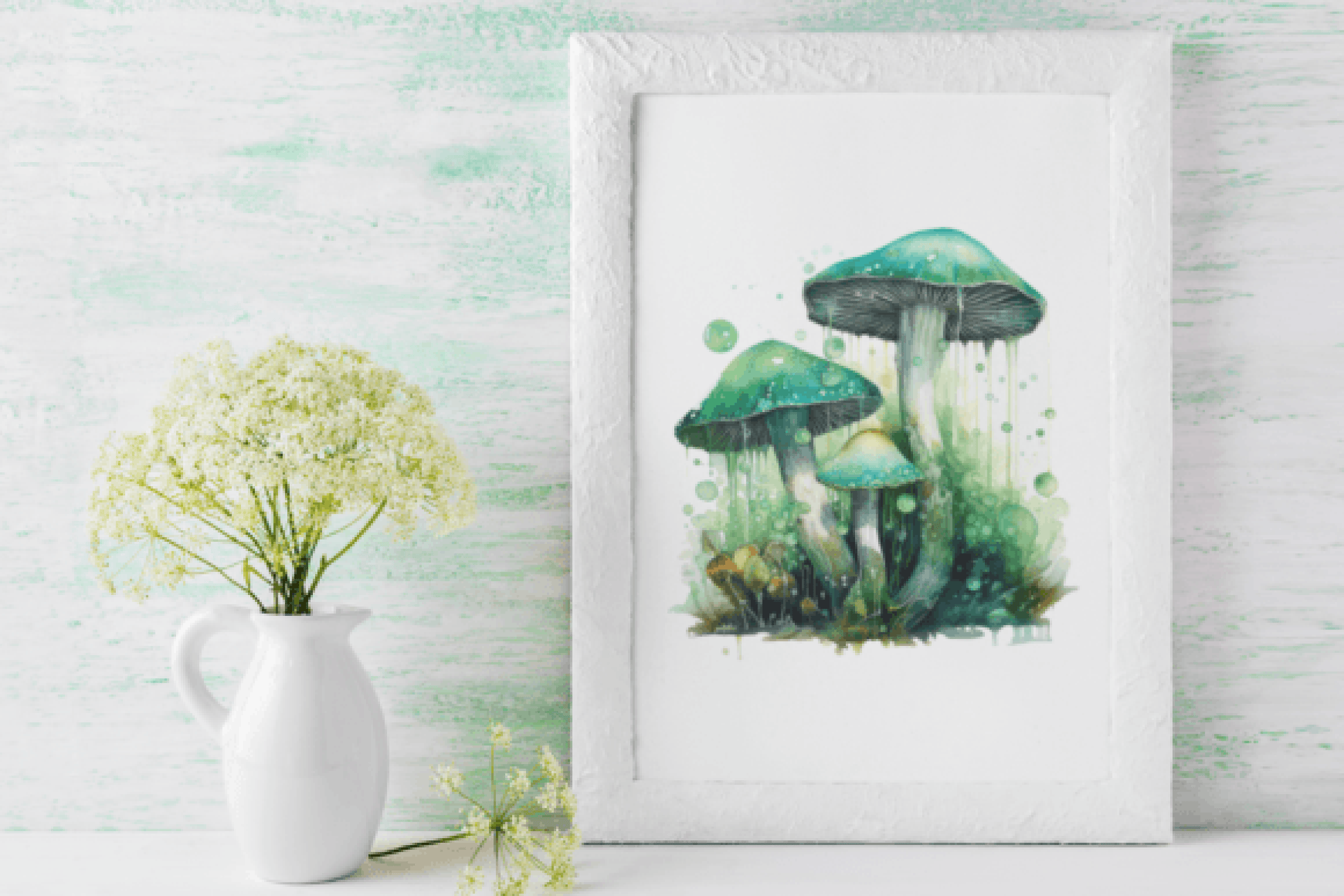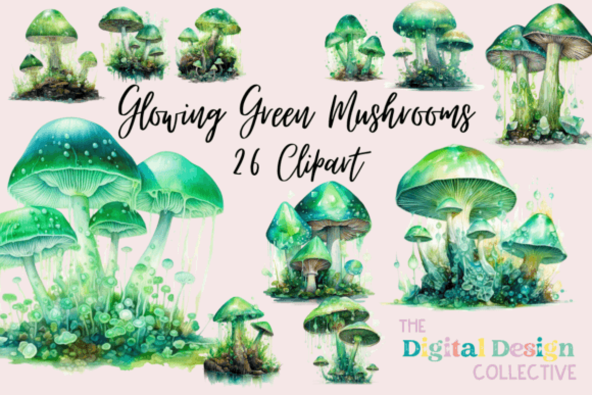 Glowing Green Mushrooms Art Clipart Bundle