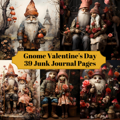 Discover the whimsical magic of love with our Gnome-themed Valentine's Day digital junk journal. Featuring charming gnomes, enchanted gardens, and fairy-tale motifs, this journal provides a delightful space for capturing memories, doodling, and expressing your creativity amidst the enchanting allure and playful romance of gnome-inspired Valentine's Day celebrations, perfect for those who believe in the power of love and a little bit of magic.