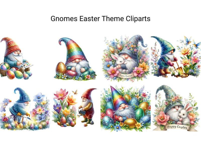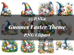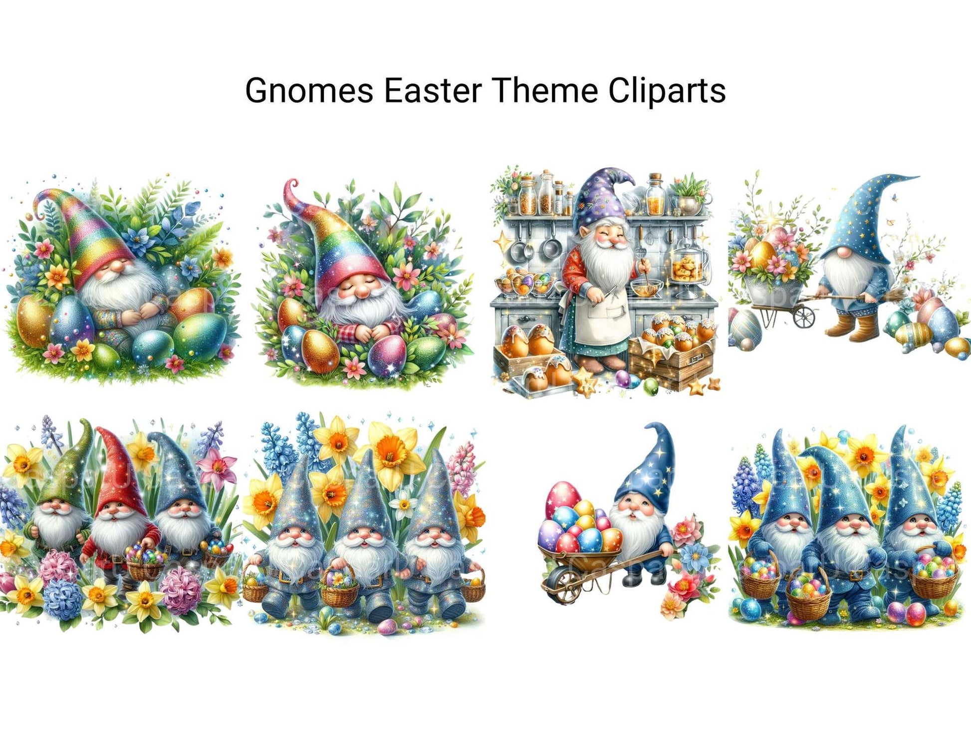 Add whimsy with this Gnomes Easter Theme Clipart set, featuring cute gnome designs, perfect for charming Easter projects.