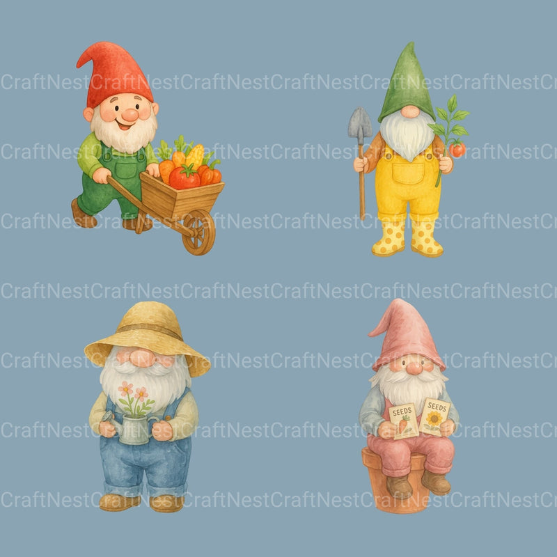 Garden with this Gnomes Gardening 10 1 Clipart Bundle, featuring gardening gnome designs, perfect for gardening fairytale crafts.