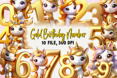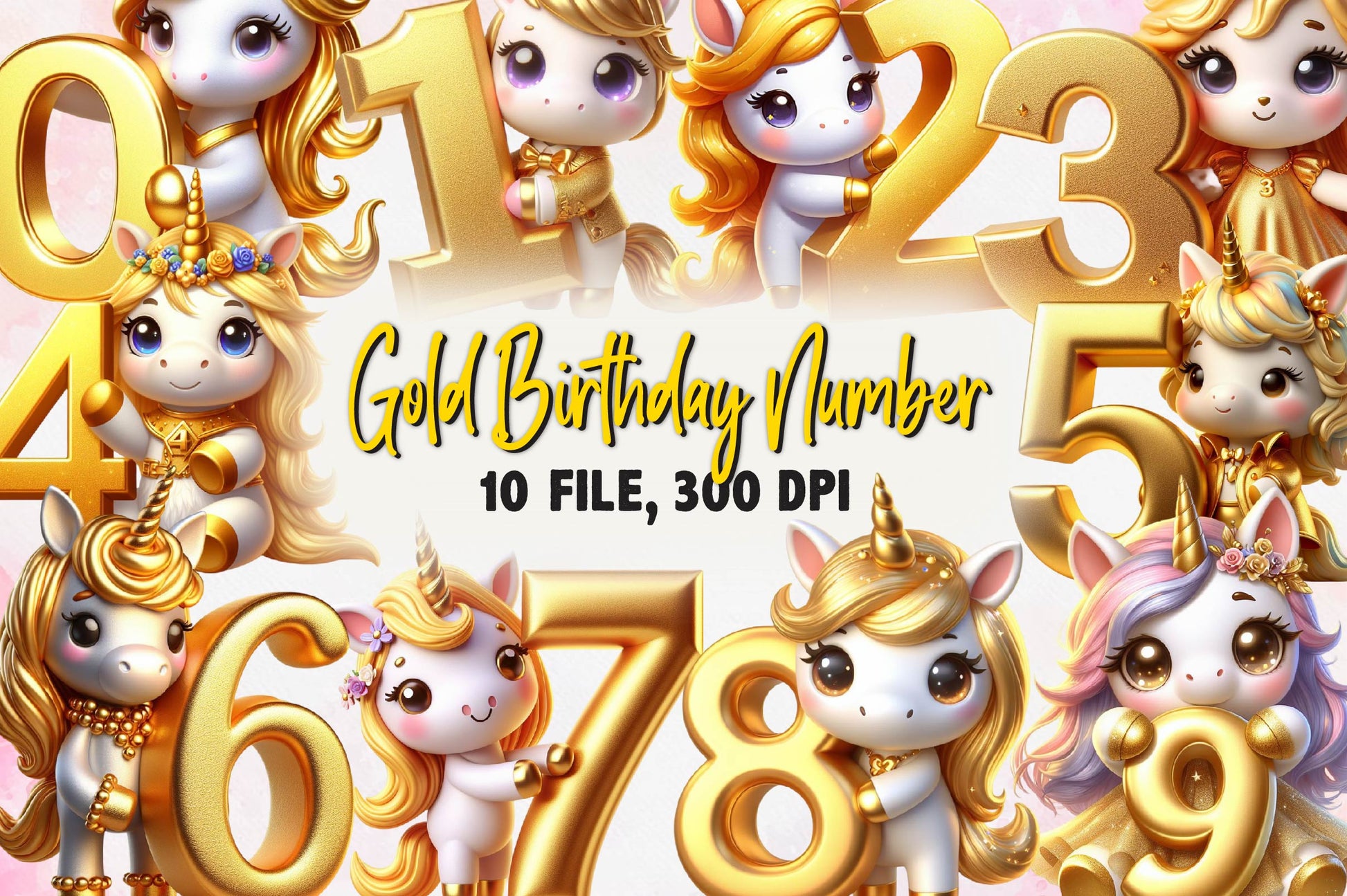 Celebrate with this Gold Birthday Number Clipart Bundle, featuring metallic age designs, perfect for birthday celebration crafts.