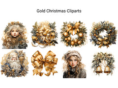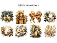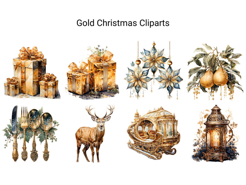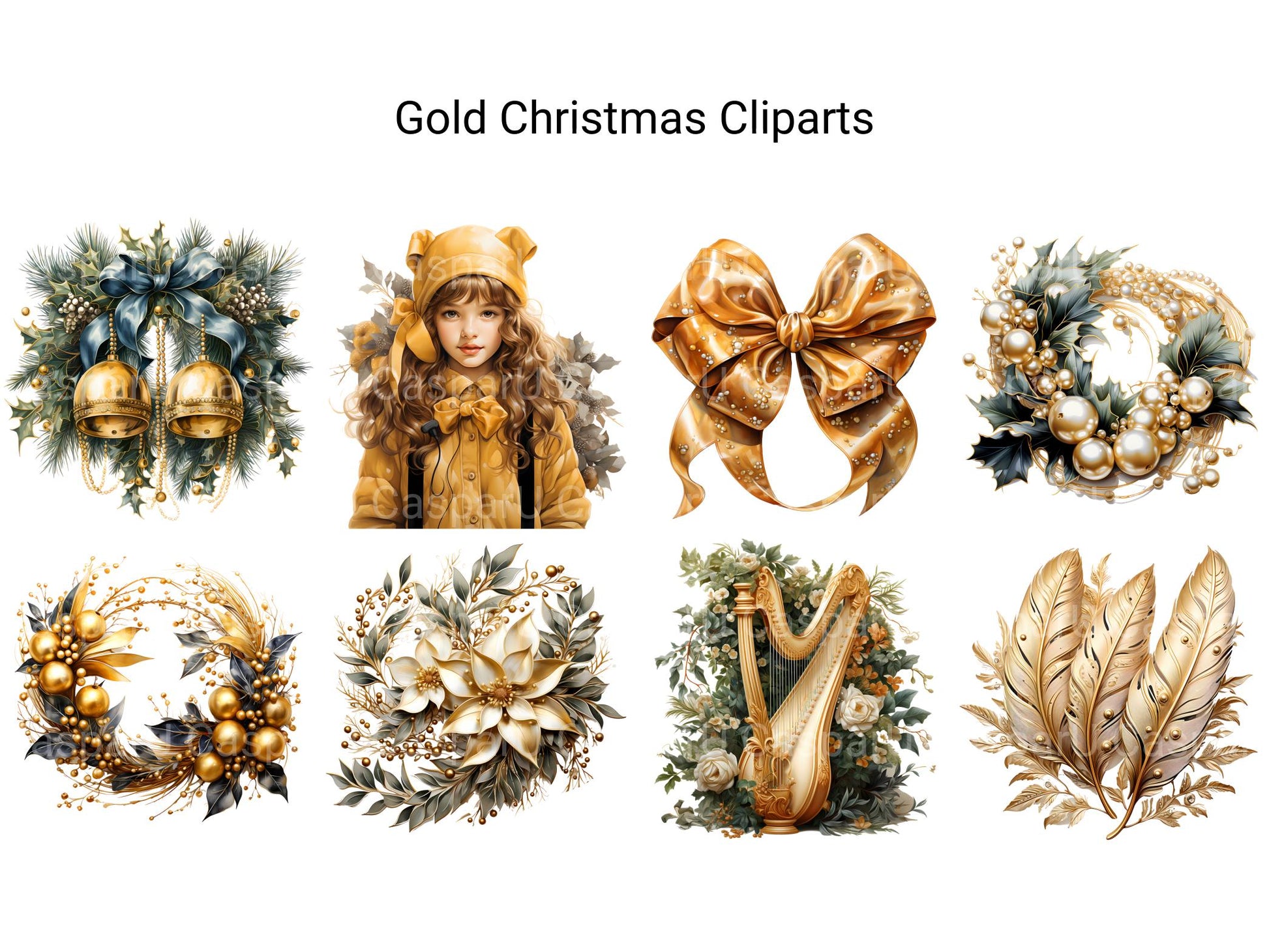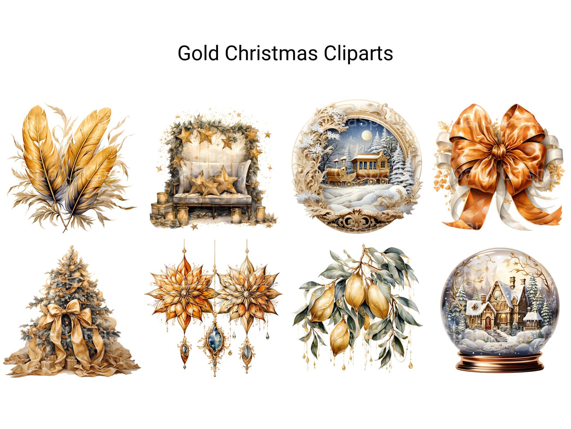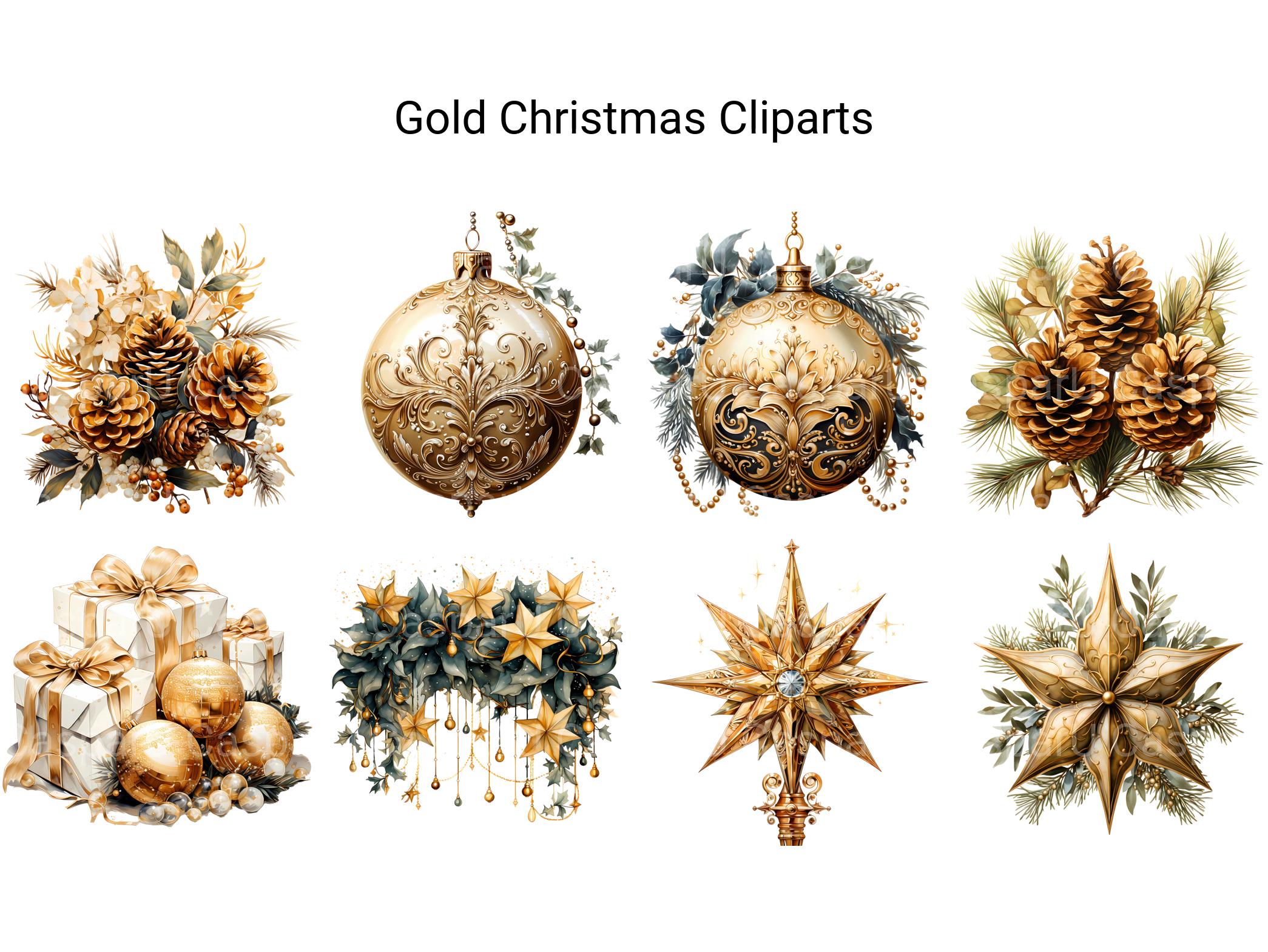 Elevate your holiday designs with our Gold Christmas clip art. These digital illustrations showcase elegant ornaments, wreaths, and decorations adorned in shimmering gold, perfect for adding a touch of luxury and sophistication to your Christmas projects, whether for cards, invitations, or festive decor, shining bright with the timeless allure and opulence of this classic holiday hue.