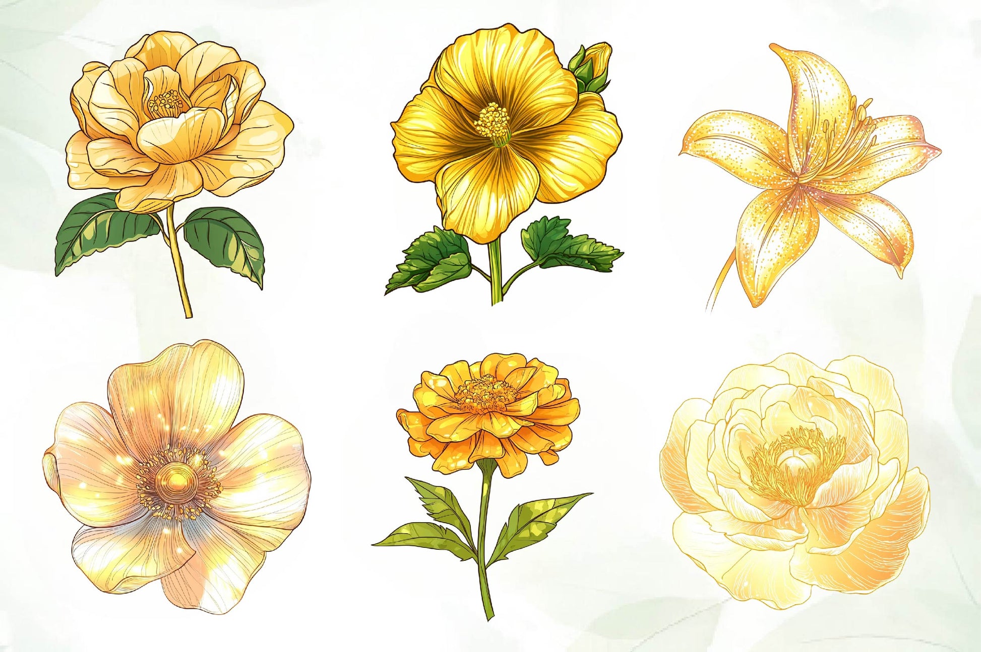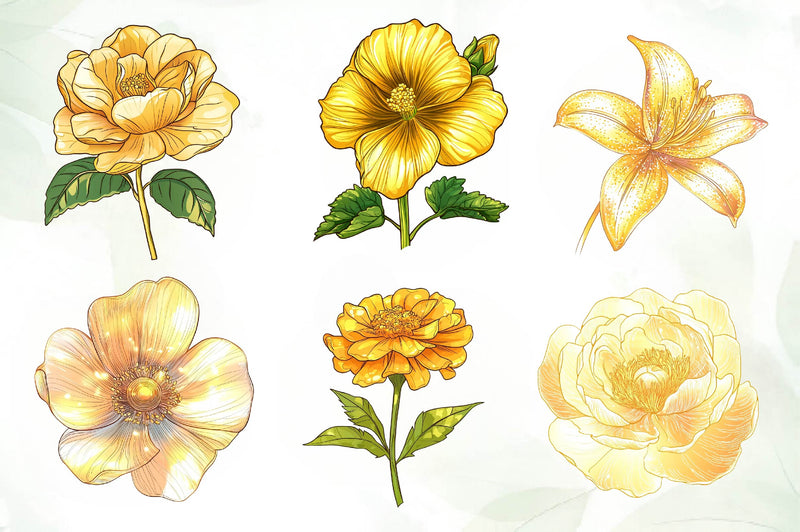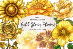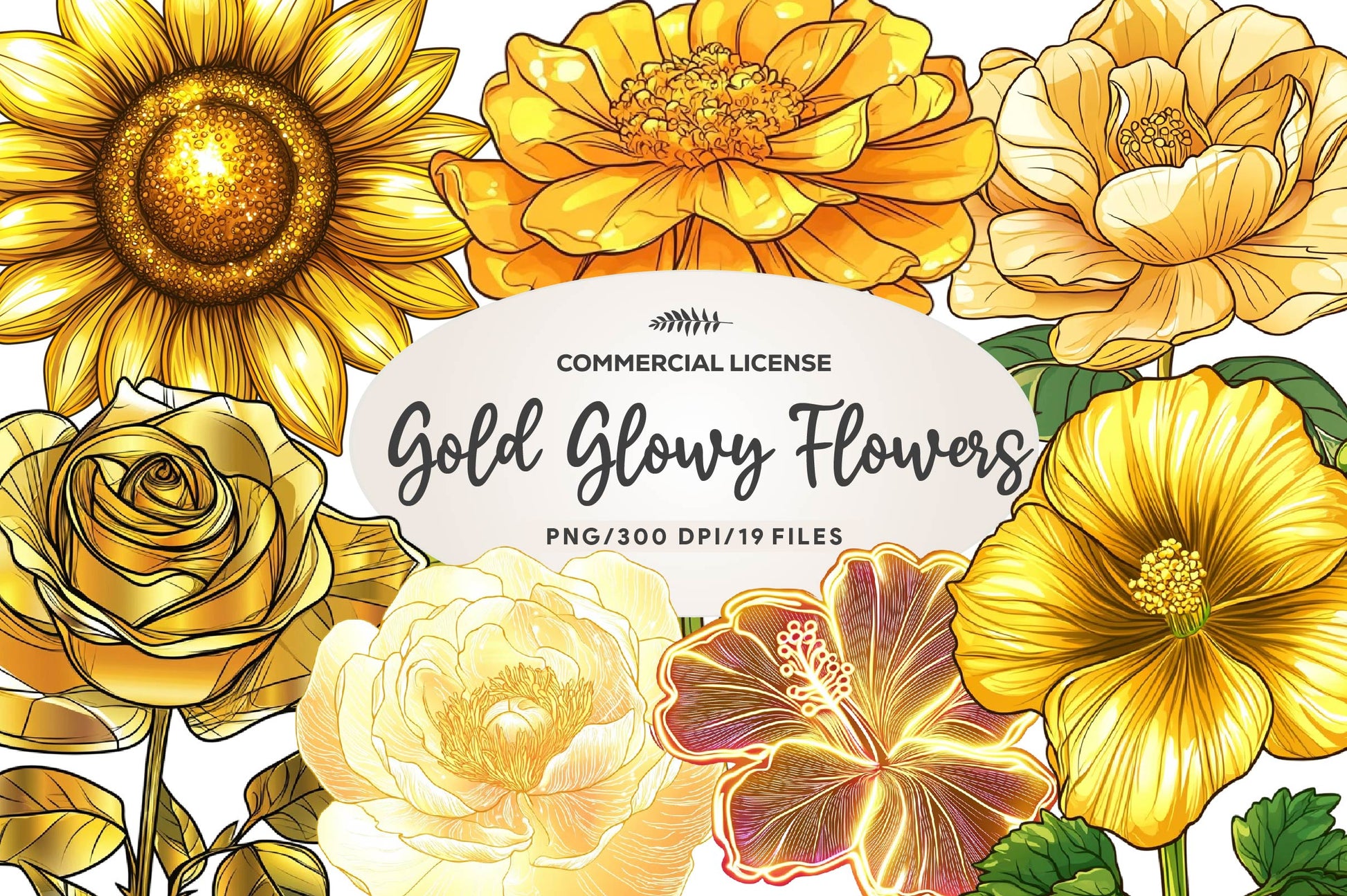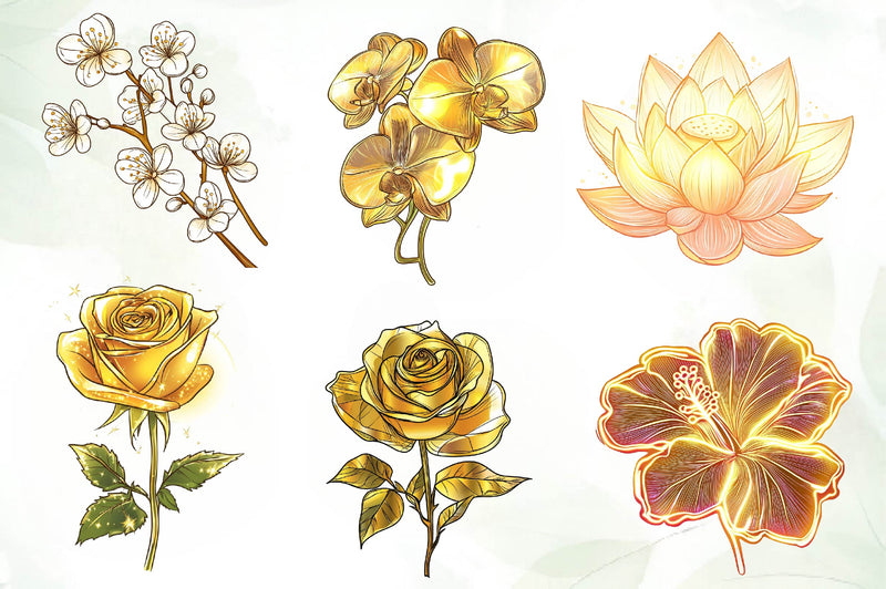 Gold with this Gold Glowy Flowers Flower Clipart Bundle, featuring golden glowing flowers, perfect for luxurious nature crafts.
