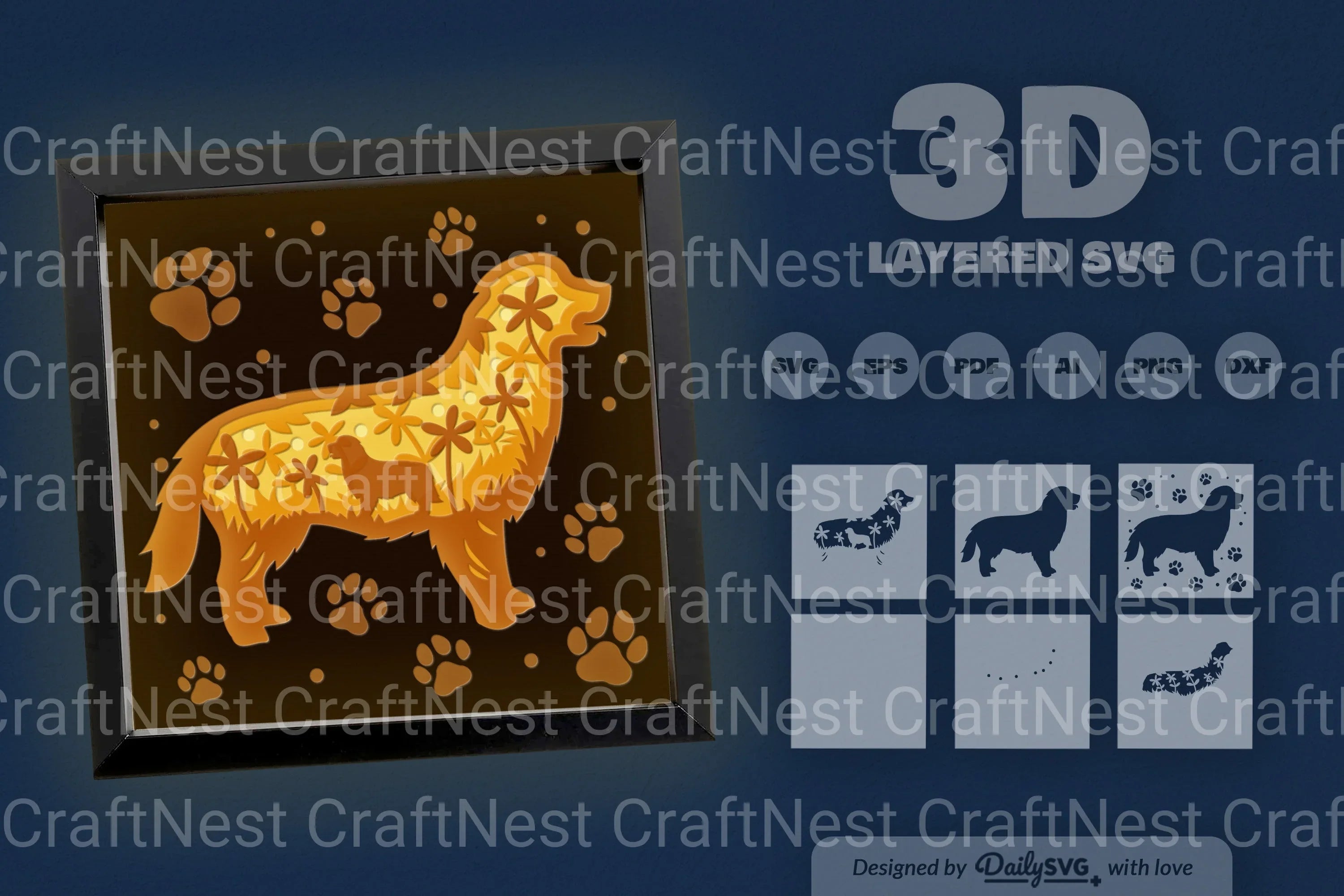 Enhance your creative projects with the Golden Retriever Floral Silhouette Papercut SVG Bundle. Perfect for dog lovers, this bundle features intricate floral designs, ideal for personalized gifts, home decor, and unique crafts.