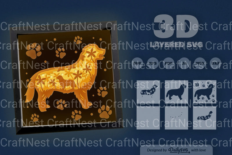 Golden Retriever Floral Silhouette Papercut SVG Bundle