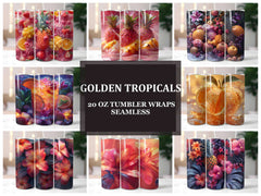 Enjoy the exotic beauty of tropical fruits with this seamless tumbler wrap. The design highlights a variety of fruits in rich golden tones, bringing a vibrant and sunny touch to your tumbler. Perfect for a cheerful, tropical vibe.