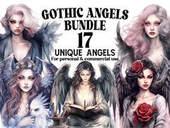 Enter a realm of dark elegance with our Gothic Angels clip art. These haunting digital illustrations depict angels in the Gothic style, with dramatic attire, intricate details, and mysterious expressions, perfect for adding a touch of Gothic romance and macabre beauty to your designs, whether for Halloween, gothic-themed events, or alternative fashion, embodying the timeless allure of Gothic-inspired seraphic grace.