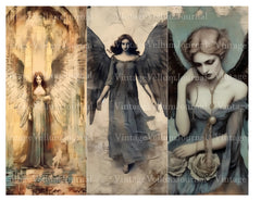 Explore the darker allure of celestial realms with our Gothic Angels digital junk journal. Featuring hauntingly beautiful illustrations of angels draped in ornate attire amidst shadowy landscapes, each page exudes an aura of mystery and romantic melancholy, perfect for those drawn to the enigmatic charm of Gothic aesthetics in their creative pursuits.