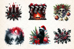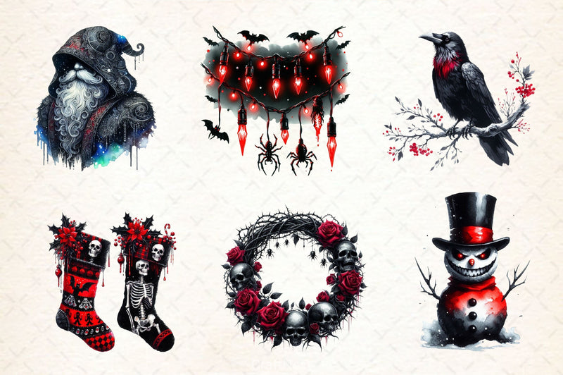 Darken with this Gothic Christmas Clipart Bundle, featuring dark holiday designs, perfect for alternative Christmas crafts.