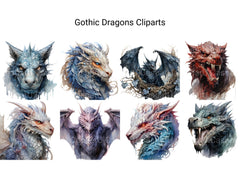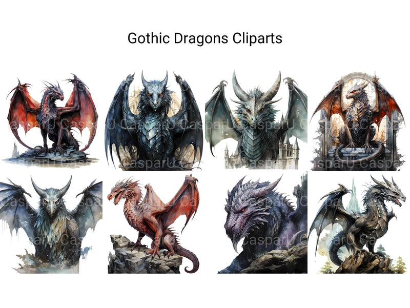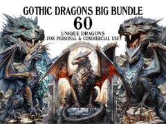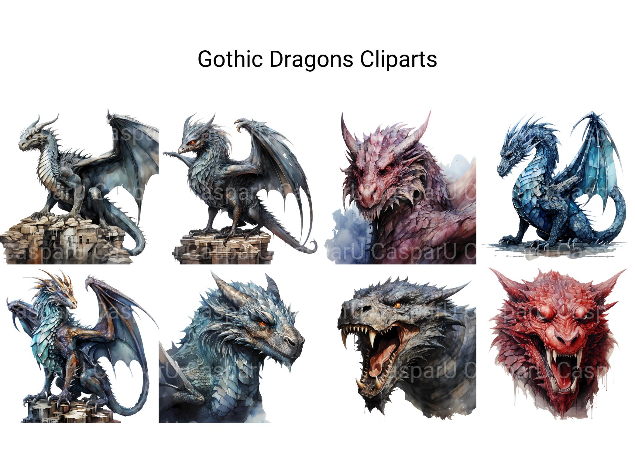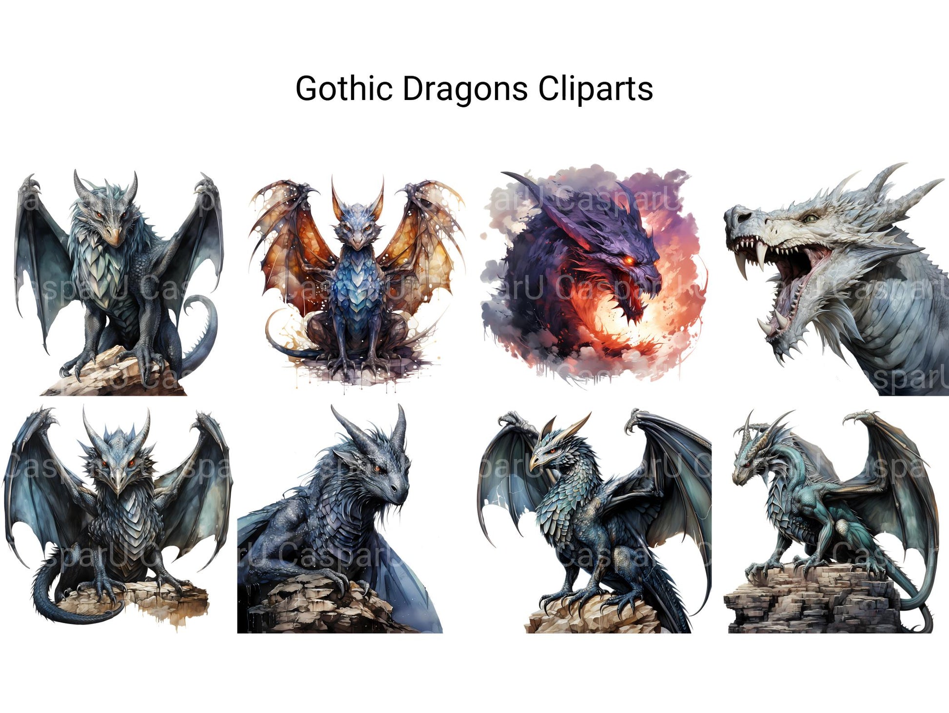 Venture into the realm of darkness with our Gothic Dragons clip art. These eerie digital illustrations feature dragons of gothic lore, with twisted horns and ominous silhouettes, perfect for adding a touch of dark fantasy and medieval intrigue to your designs, whether for fantasy artwork, gothic-themed decorations, or sinister tales, evoking the haunting allure of gothic dragons in chilling detail.