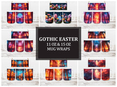 Transport yourself to a world of Gothic splendor with our Gothic Easter digital mug wraps. Featuring intricate lace-like patterns and Gothic-inspired imagery, these wraps exude an air of mystery and romance. Enjoy your coffee or tea in dramatic style with these captivating mug wraps, perfect for anyone who is drawn to the dark allure of Gothic art and architecture.